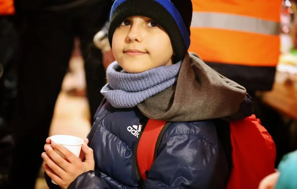 11歲烏克蘭男童徒步跨境到斯洛伐克避難,這個笑容激勵了全世界繼續對抗俄羅斯。圖/斯洛伐克內政部