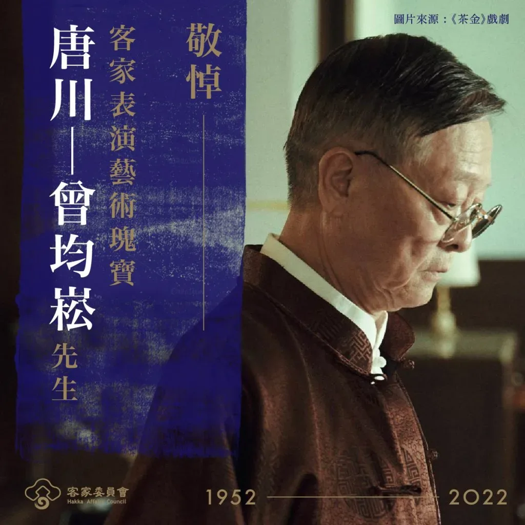 【綜合報導】唐川辭世消息傳出後,國內各界致哀追悼,客家各界也在臉書上發文表示哀傷,客委會不捨追思,也發文介紹唐川、並以「客家表演藝術瑰寶」稱之,以下為客委會的追悼全文。