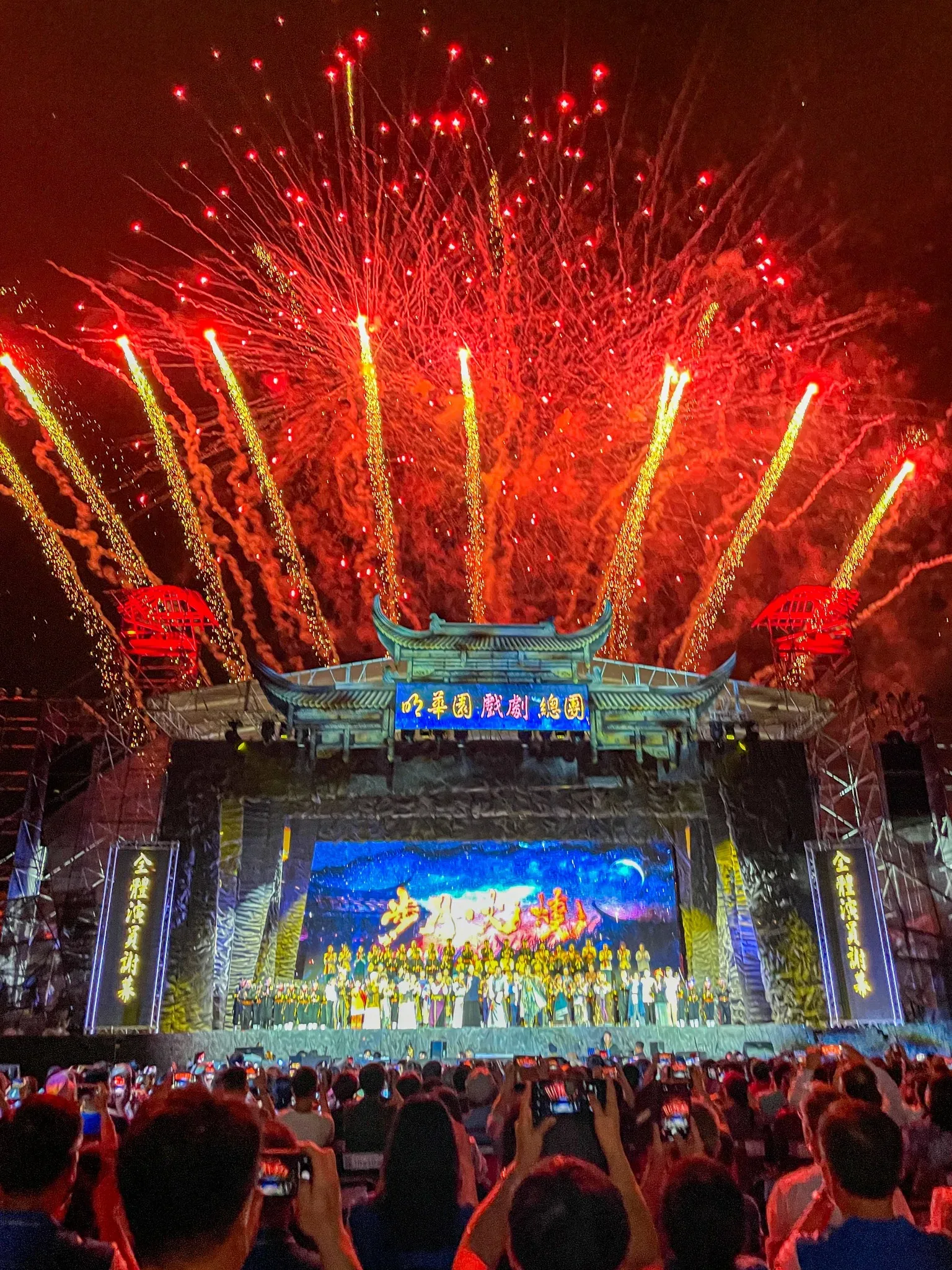 【宋佩遙/屏東報導】屏東縣政府與明華園總團共同籌備長達2年的《步月.火燒》,於今晚(26日)在屏東市千禧公園首演,以乙未年間(1895年)六堆客家義勇軍,奮勇抵抗日軍之首場戰役地點「步月樓」以及最後一戰的「火燒庄」為題材,由明華園當家小生孫翠鳳、郭子乾、劉瑞琪等率領上百人演出,這場戲動員了演員156人,演技精湛細膩、現場舞台燈光氣勢磅礡,讓上萬觀眾感動不已,更是齊敲碗希望明華園總團再加碼演出!