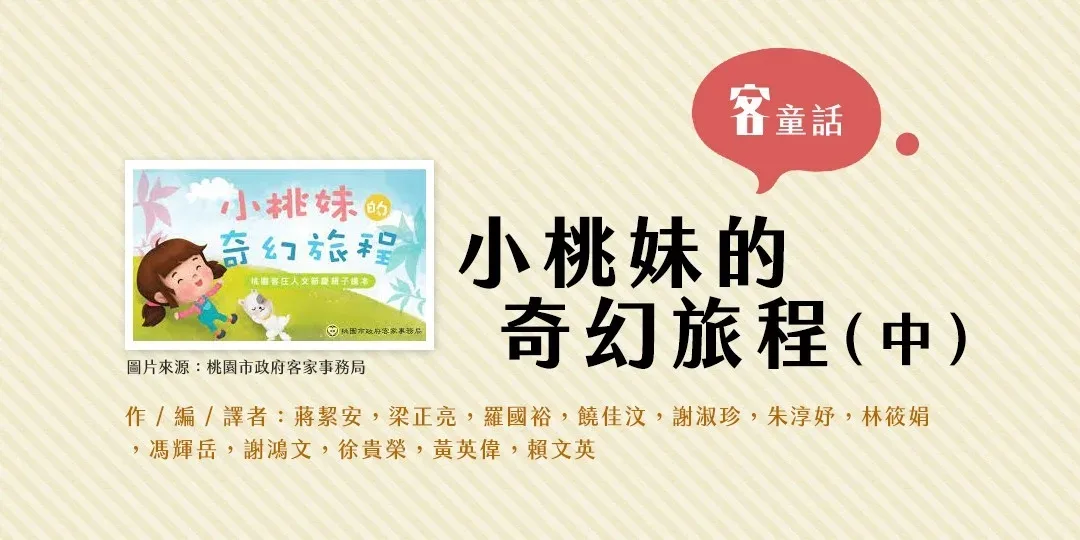 【編按】《客新聞》即起推出客語兒童有聲故事書,將以全客語對照華文方式提供讀者學習,所有故事皆以「四、海、大、平、安」五種腔調呈現,讀者可點選自己喜歡的版本聆聽。
