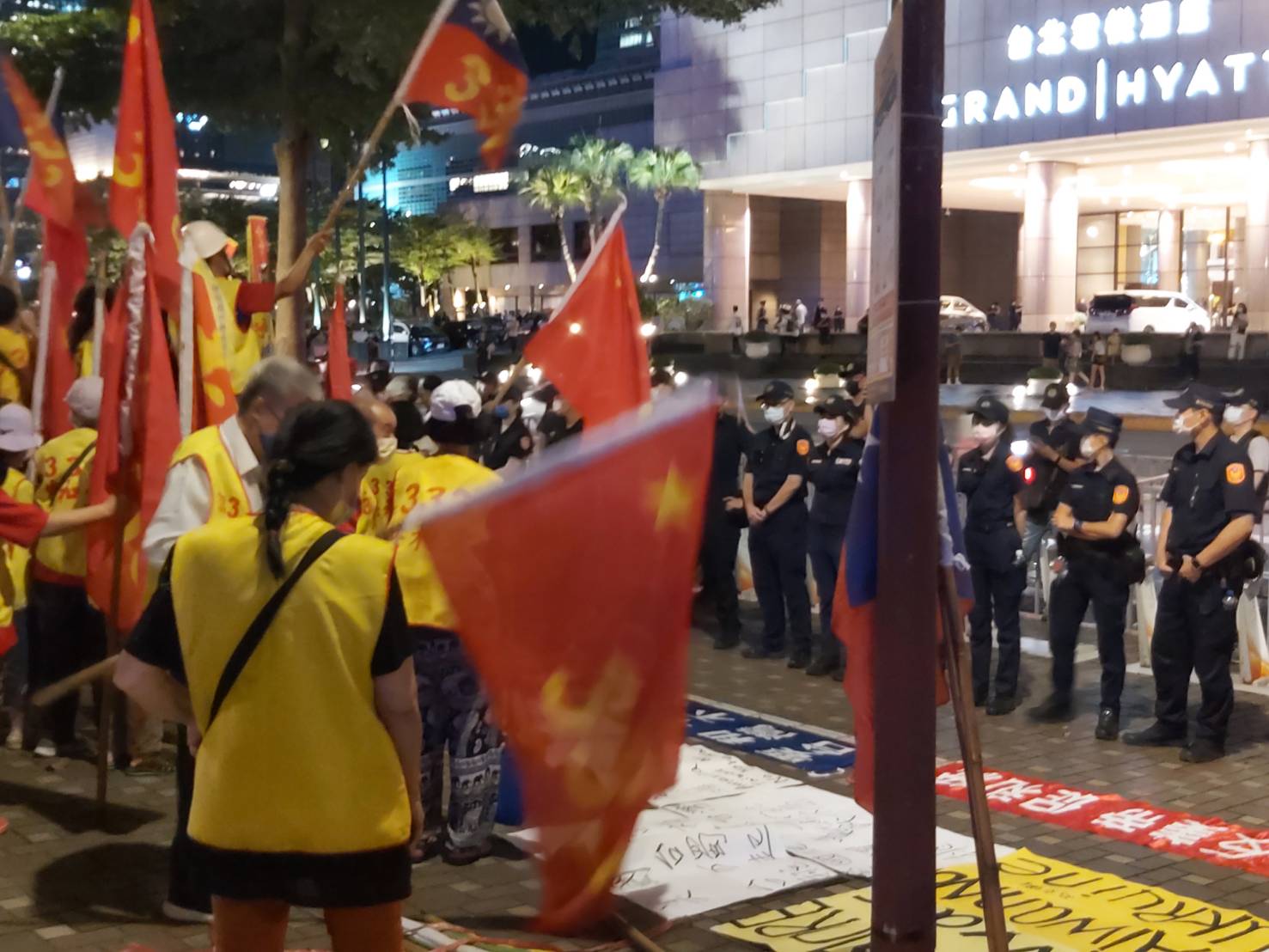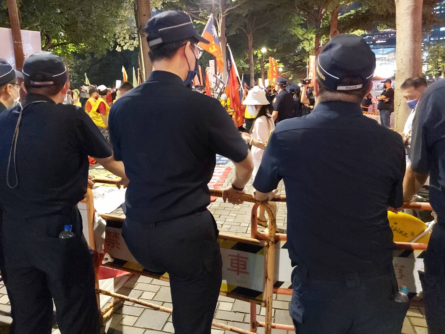 為避免現場有暴力滋擾事件發生,北市警方晚間在君悅酒店部署大批警力維安,並同步進行蒐證。警方指出,現場已部署多名警力及拉起護欄設置陳情區,並調派員警架設錄影器材準備蒐證等防範作為,且將依現狀況適時增加警力。