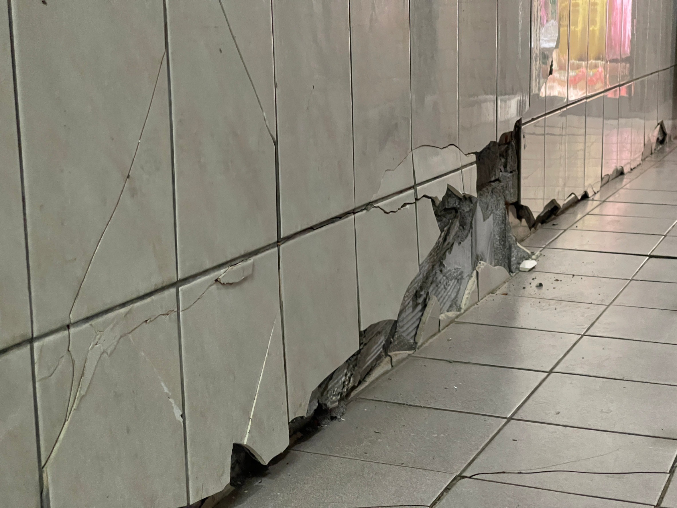 富里街區也可看見馬路上有一道道地震造成的裂縫,記者恰好遇到富里村曾明健村長,村長帶著記者說明附近區民的災情,許多民房牆壁都有明顯的裂縫,有房屋的水泥、磁磚甚至被震碎,相當危險。彭玲芬在一旁也開玩笑地說「地裂很普通啦,大家都有」。