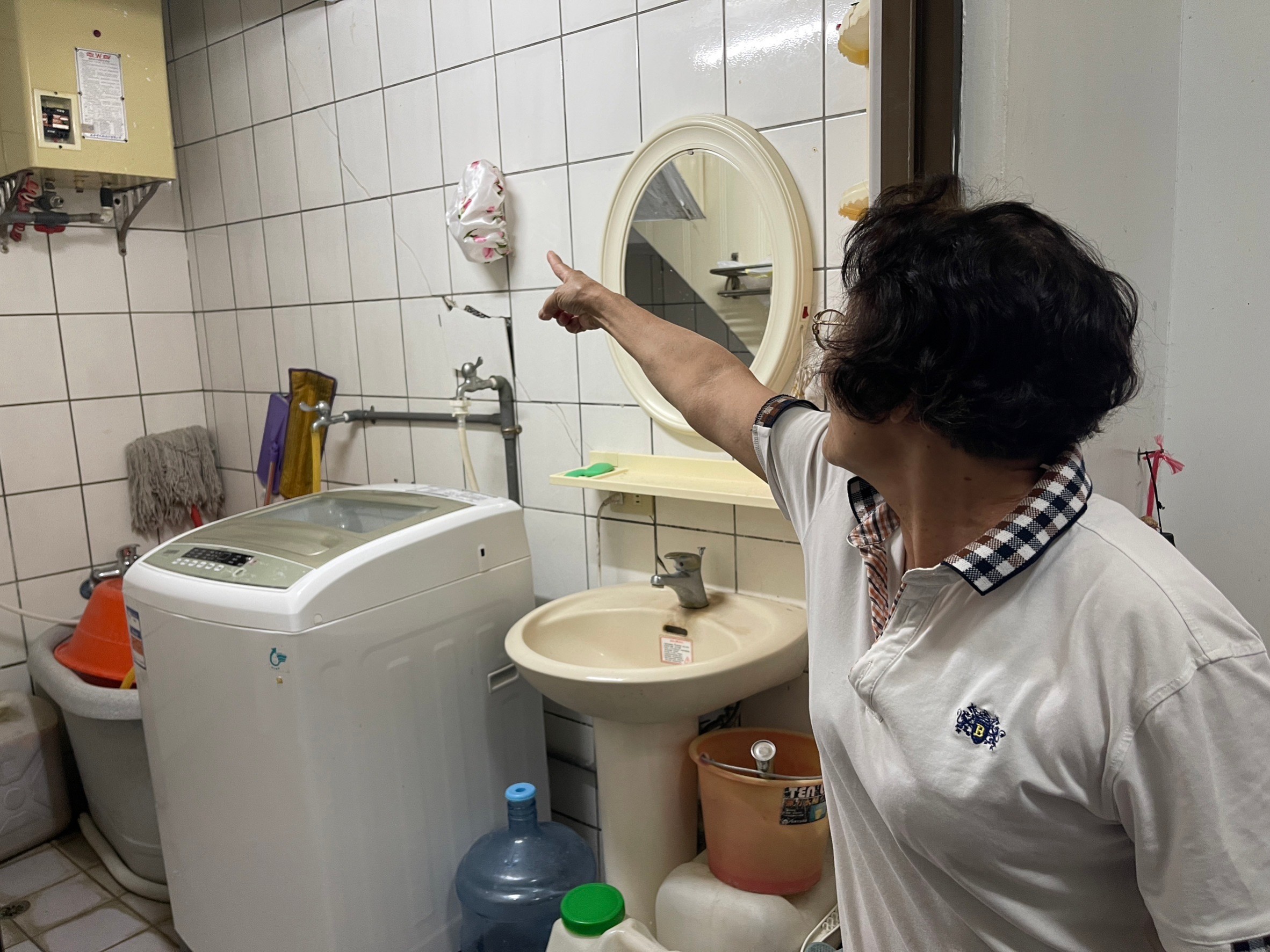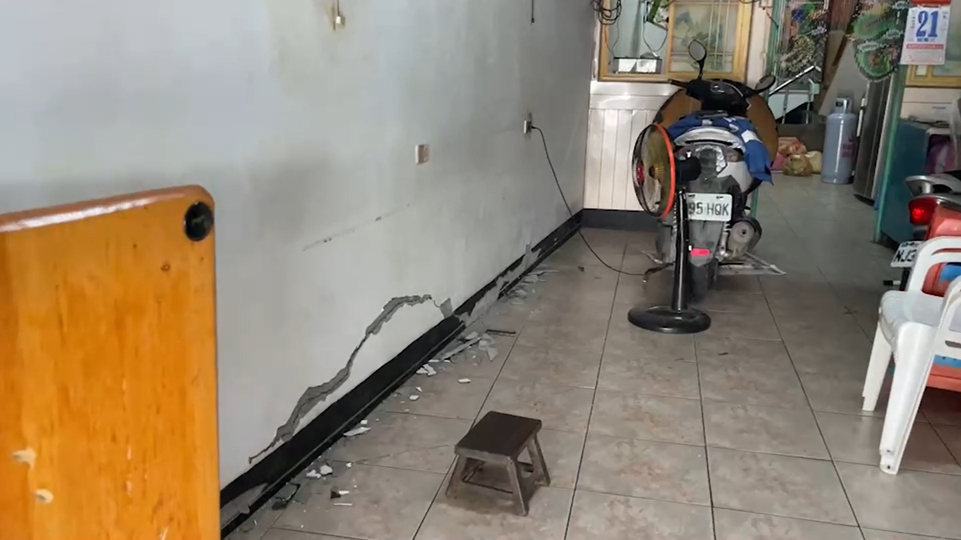 彭玲芬帶著記者來到室內,三扇大櫃子被震倒在地,櫃子裡的東西全數散出,彭玲芬表示,地震當下她剛好在睡覺,突然間感覺像有人在拉扯一樣,她聽到隔壁櫃子、酒瓶倒下發出巨大聲響,非常害怕,她也因為地震被遙落床底。家裡養的小狗驚慌失措地衝向她,她便與狗抱在一起躲在床底縫隙,媽媽江玉蘭也嚇得趕緊跑到戶外。