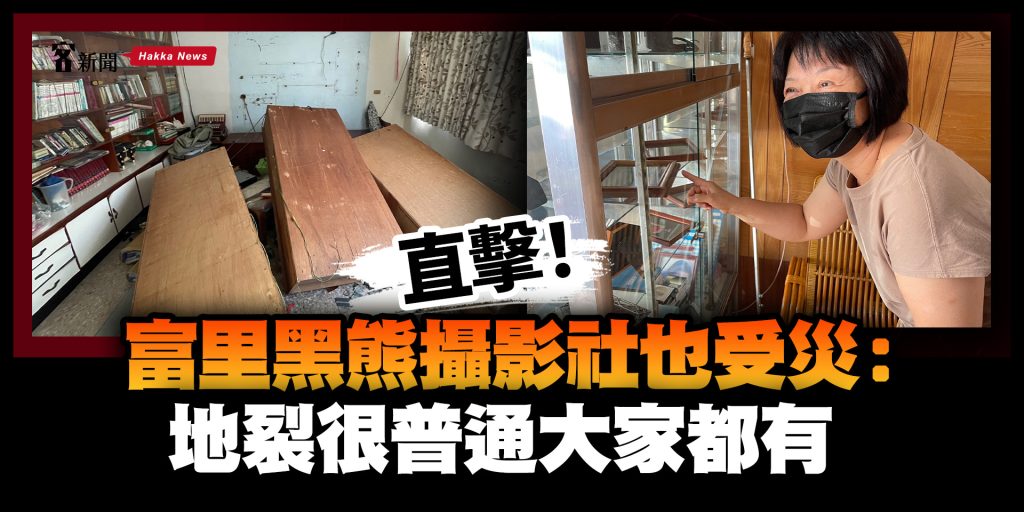 【宋佩瑤、范修語/花蓮報導】《客新聞》日前曾報導「台九線的時光機/莒光攝影社拍遍富里半世紀 連獵人抓黑熊照都有」,引起網友熱烈討論,這次台東池上918強震,《客新聞》團隊來到花蓮,再次拜訪富里莒光攝影社瞭解地震災情。攝影社二姊彭玲芬表示,地震當下像有人在拉扯,連站都站不穩,只能抱著家裡養的小狗滾到床底縫隙,直呼這是她自己經歷過最大的地震。