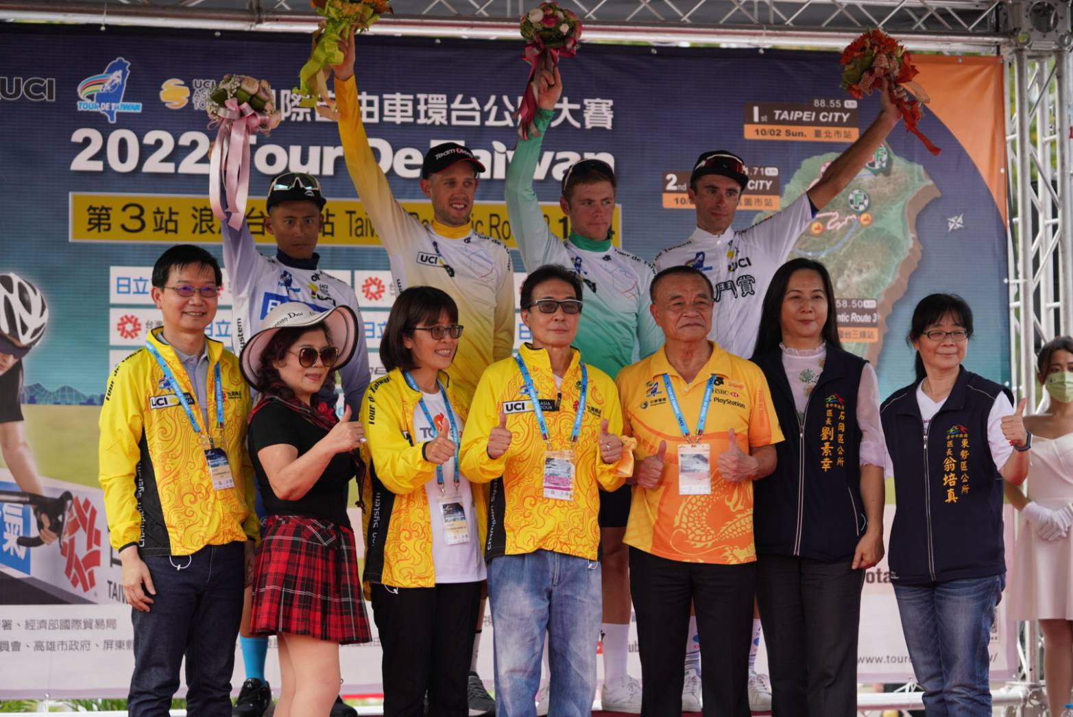 【生活中心/新竹-台中報導】2022國際自由車環台賽第三站-浪漫台三線站,中華隊馮俊凱在對手不斷攻擊下,今天保住了藍衫,單站冠軍則由英國崔拿堤車隊的蘭貝蒂盧克(LAMPERTI Luke)奪得,而昨天拿下黃衫的日本右京隊班傑明(DYBALL Benjamin)今天保住了黃衫。