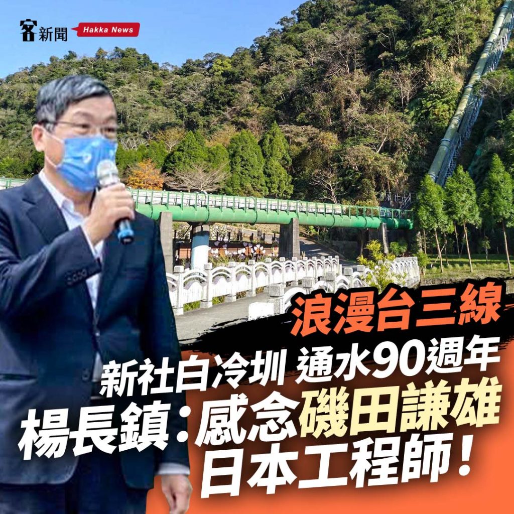 【客庄中心/綜合報導】客家委員會主任委員楊長鎮今天前往台中新社,參加社團法人臺中市白冷圳水流域發展協會主辦的「白冷圳文化祭90周年通水式紀念特別活動」。楊長鎮首先感念日本時代原創水利工程的磯田謙雄工程師,因為興建水利工程,解決了早期爭奪水資源常引起跨族群間的競爭,更促進當地和諧社會的基礎。