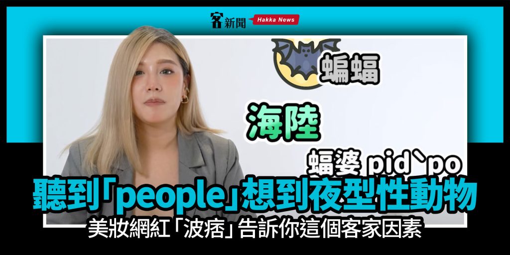 「波痞」這次一開場就介紹「people」,原來「people」的發音與「蝙蝠」的客語相當雷同,四縣腔發音為 pid poˇ ,海陸腔則為 pidˋ po,聽起來與「people」相當雷同,所以她以前學英文時,都會把客家話的蝙蝠與英文聯想。