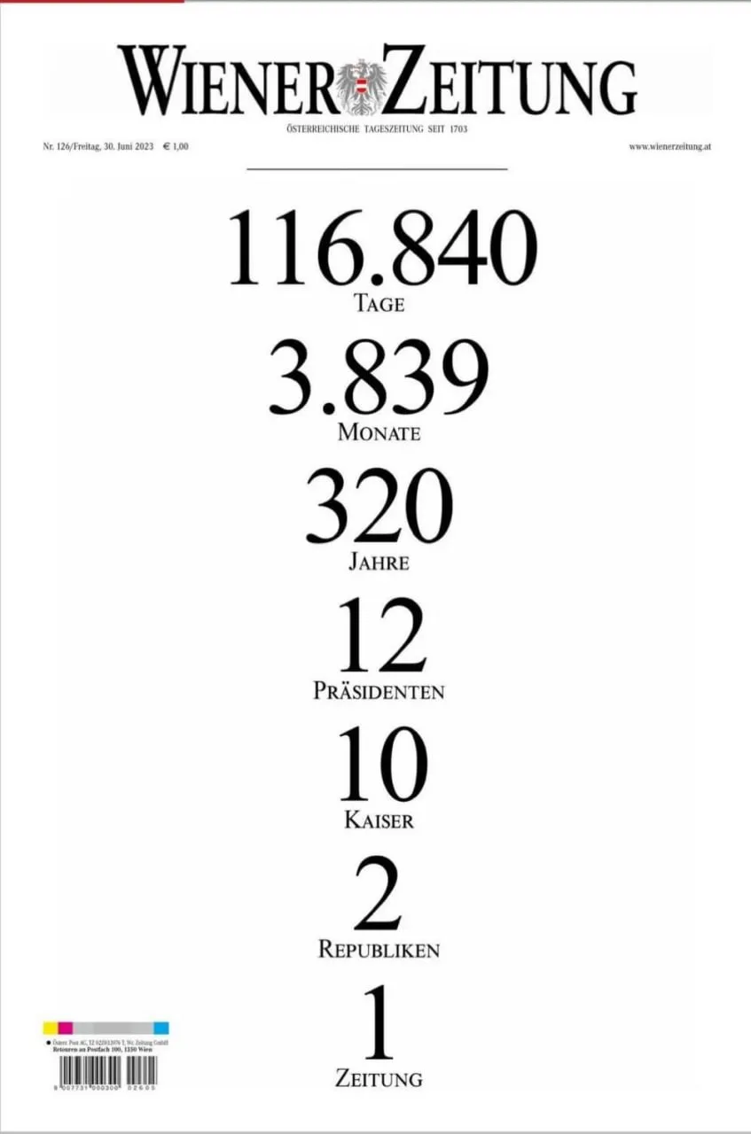【於慶中/綜合報導】網路與數位科技的突飛猛進徹底顛覆了傳統出版業,特別是新聞與媒體的生態,也有巨大的改變。創刊迄今已近320年的奧地利《維也納日報》(Wiener Zeitung),因為面臨日益減少的銷售量造成資金短缺的問題,加上奧國媒體政策改變,上月30日發行最後一期報紙後,正式宣佈停止發行紙本,只保留網路新聞業務。