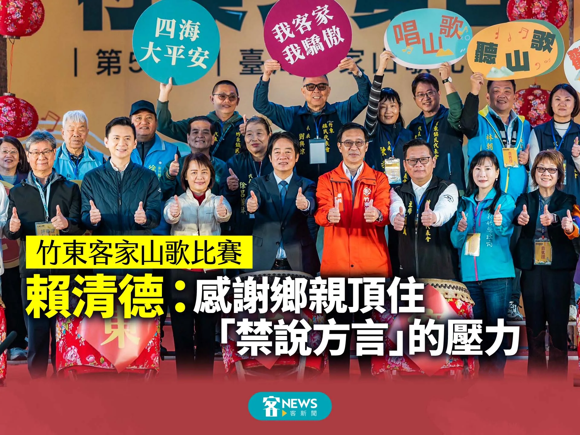 竹東客家山歌比賽 賴清德:感謝鄉親頂住「禁說方言」的壓力
