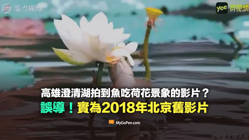 網傳「台灣攝影師拍到魚吃荷花」的影片及訊息,內容聲稱台灣有一群專業攝影師,在高雄澄清湖花了 2 個多小時,拍到「魚吃荷花」的慢鏡頭影片。經查證,網傳影片最早於 2018 年 8 月在網路上出現,並非近期拍攝的影片;影片拍攝地點則是在中國北京市順義區的「東方太陽城」池塘,不是高雄澄清湖,該地區因有攝影愛好者拍到魚吃荷花的景象,因此吸引不少民眾前往拍攝,網傳訊息不正確。