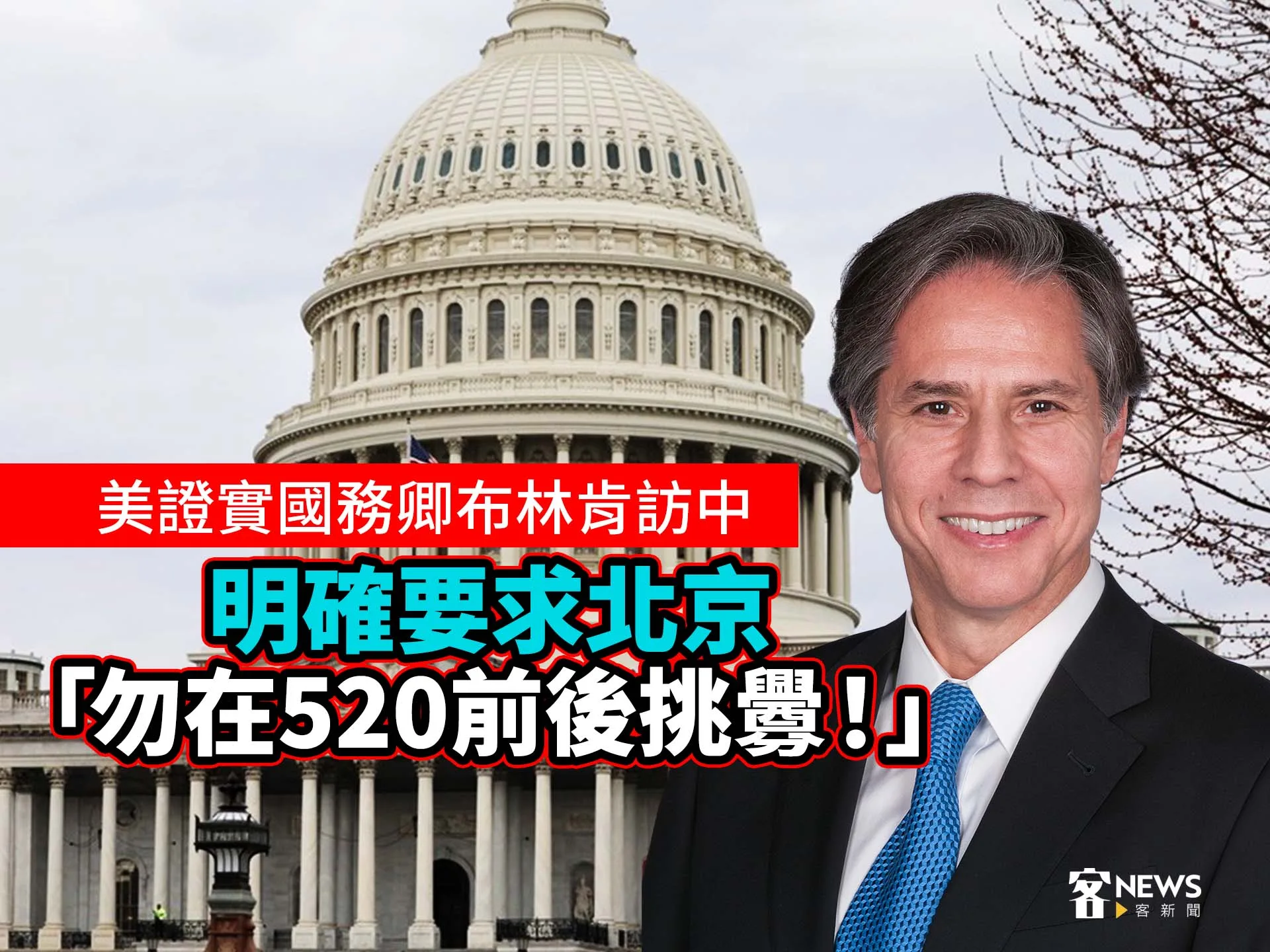 有別於美國國務院日前避免點名中國,只要求「所有國家」勿在總統當選人賴清德就職前挑釁,亞太助卿康達今天表示,國務卿布林肯訪中期間,已經明確要求北京勿在5月20日前後藉機加劇台海緊張,美方將仔細關注中國一舉一動。
