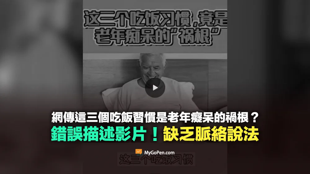 傳言說「不吃早餐的人,患老年癡呆的幾率是其他人的4倍」,並引用來自日本科學雜誌的出處,由於中國慣用「老年痴呆」的用語,但臺灣早已正名為「失智症」、不再污名化,因此查核記者在國際公共醫學資料庫 Pub Med 以「早餐」,以及「癡呆」、「失智」的英文(Dementia)二個關鍵字搜尋,可以找到很多關於安養機構老人或是社區人口的三餐飲食時間、比例等研究,但如果再加上「日本」作為第三個關鍵字,則查無傳言所說的研究,傳言引述的研究可能較不具有代表性,而且傳言說法也缺乏其他更多國際大型研究持不同結論的完整說法,易造成民眾誤解。