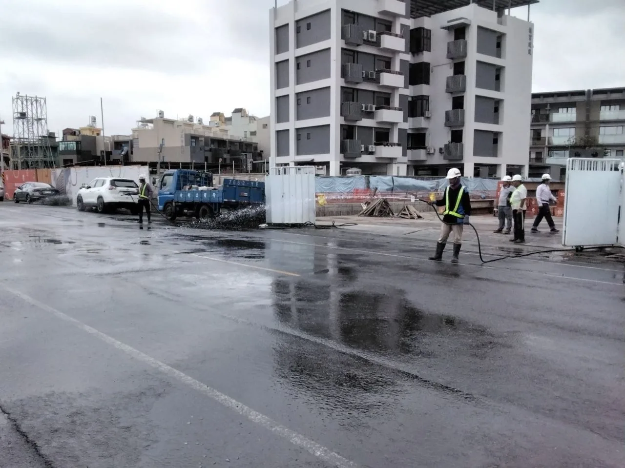 營建工地出入口,加強灑水作業,降低塵土飛揚。屏東縣環保局提供