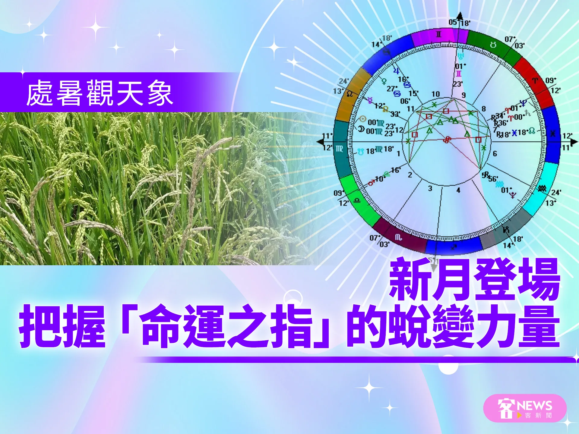 ◎春分前的19日,太陽與海王星在雙魚29度準確合相。日海一年一度的合相,對個人和大環境有著不同的意義,再加上發生在雙魚29度,象徵業力的度數(因為下一度就進牡羊,一個12宮周期的結束、新的循環開始)。對個人來說,炙熱的太陽將海王星的濃霧驅散,讓人看清楚現實、曾經犯下的錯,是一個反省檢討、拋開積習再向前的契機。對大環境來說,太陽加強了海王星「水」的能量,與水、疫病有關的災害會被激發。