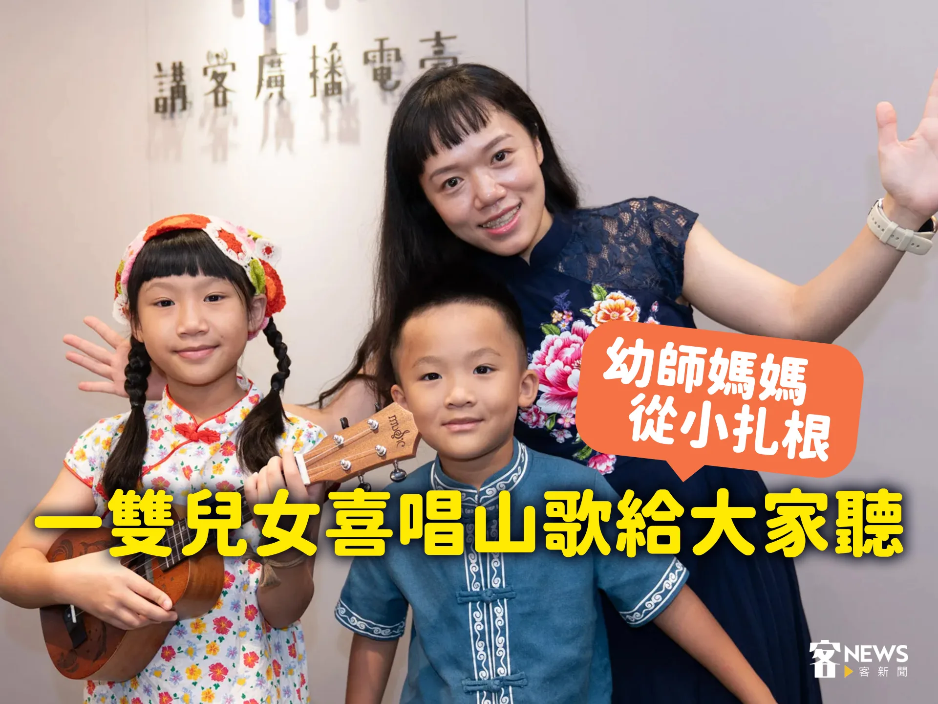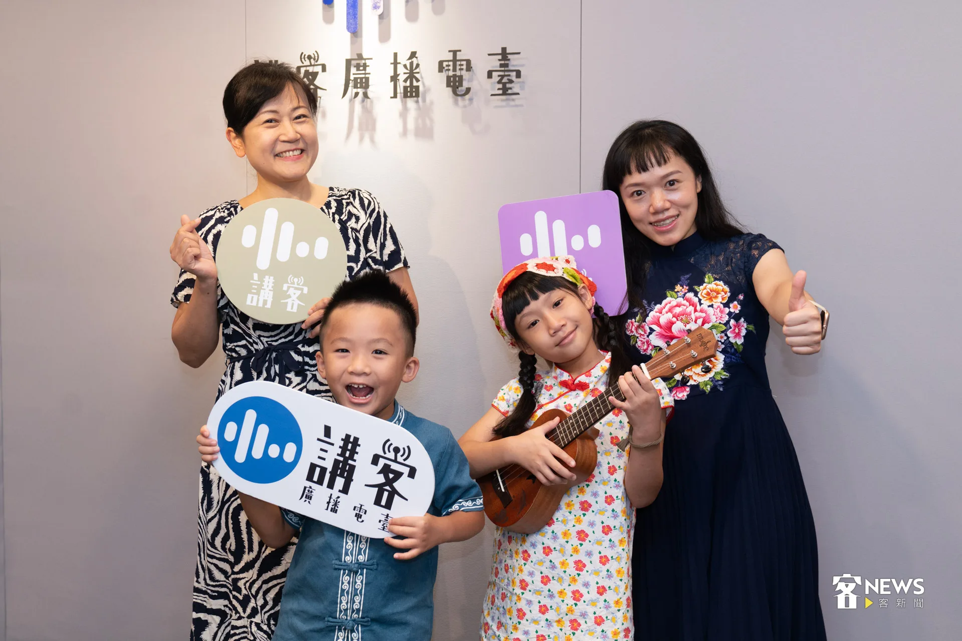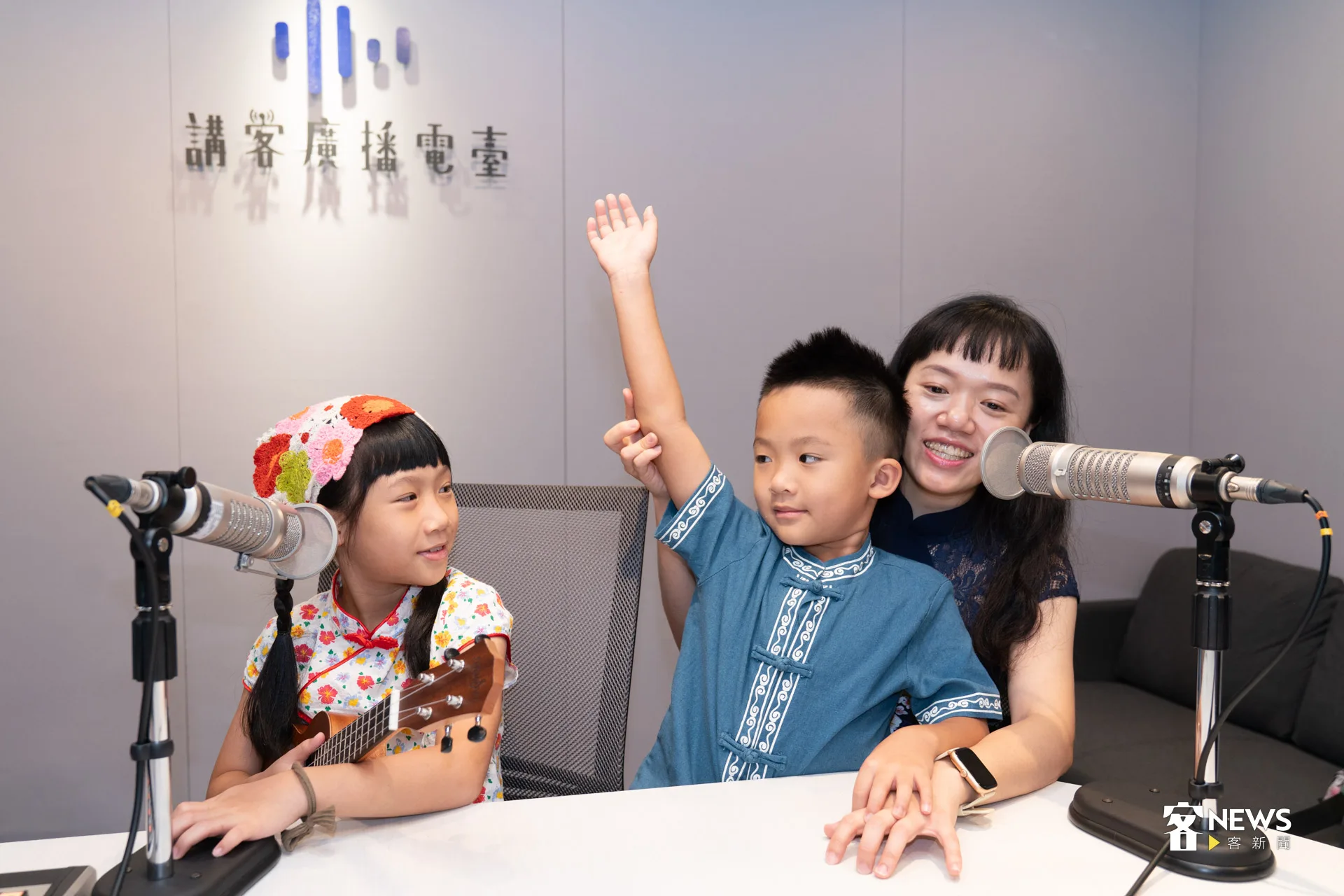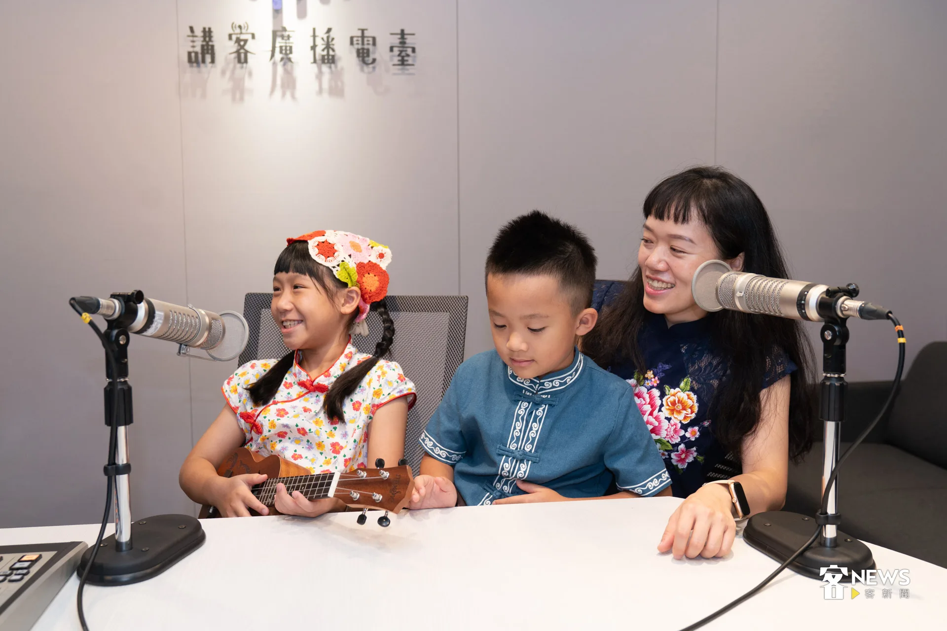 【蔡依璇、宋佩遙、洪藝晅/桃園報導】「唱客家歌的時候,覺得我是客家人。」今年8歲、來自新竹竹東的女孩鄒采芙,語氣稚嫩而篤定地說。今天「講客廣播電臺」邀請客語老師李韻慈與她的兩個孩子,同上節目〈Good morning! Hakka!〉,分享一家人的「沉浸式」客語環境。鄒采芙用烏克麗麗自彈自唱〈Hakka Hakka〉並與6歲的弟弟鄒程安合唱山歌〈問卜〉,清亮的童聲和穩健台風,讓廣播間另一端的聽眾,感受到母語音樂的純真力量。
