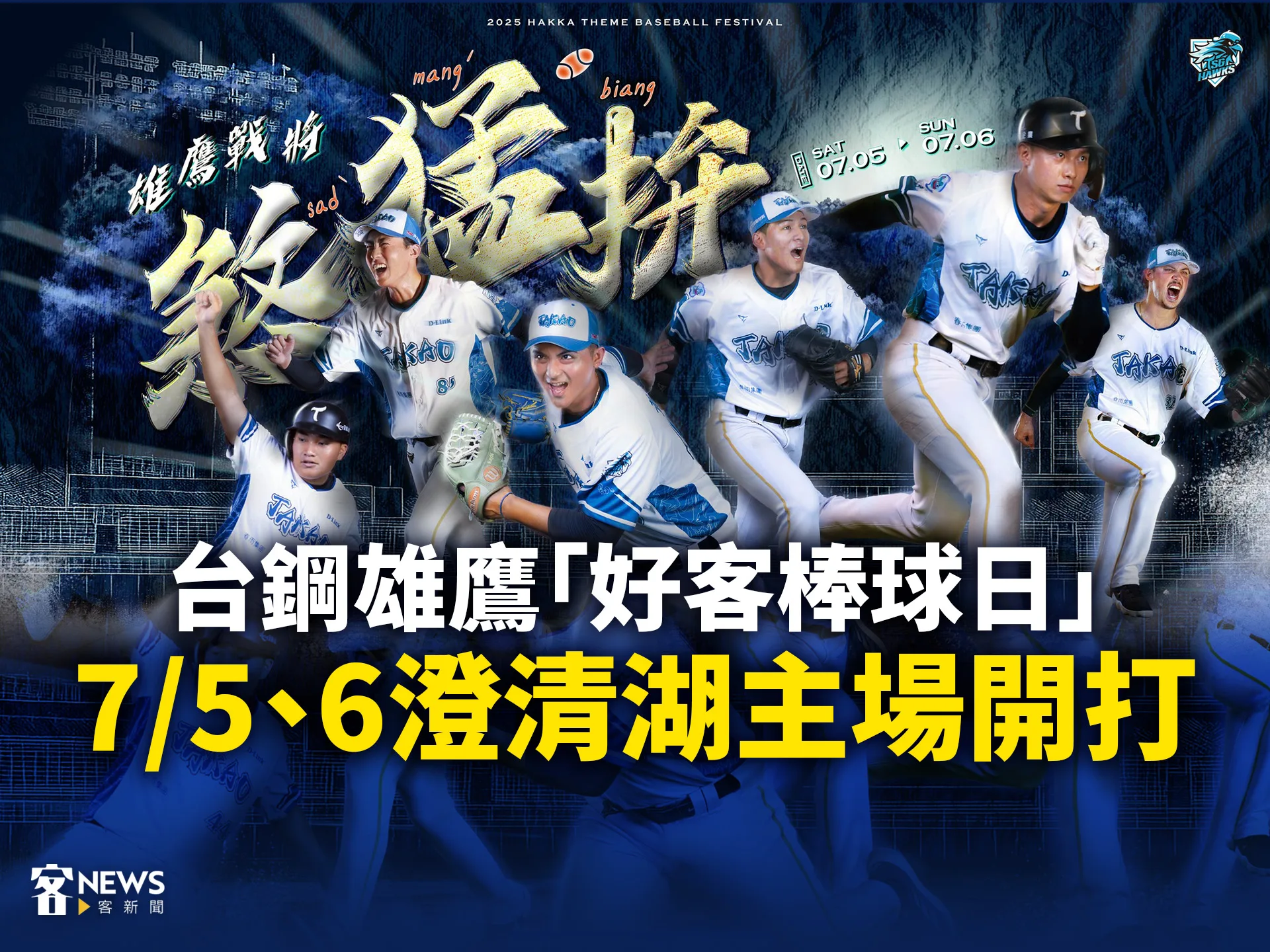 【客庄中心/綜合報導】高雄在地球團「台鋼雄鷹」下半季主場賽事將於7月4日起,在高雄澄清湖球場火熱開打,其中7月5日、6日迎來主題日「煞猛拚!好客棒球日」,首度攜手客家委員會,結合在地文化與運動熱情,要和球迷們打出一場語言融合熱血棒球的文化盛會。