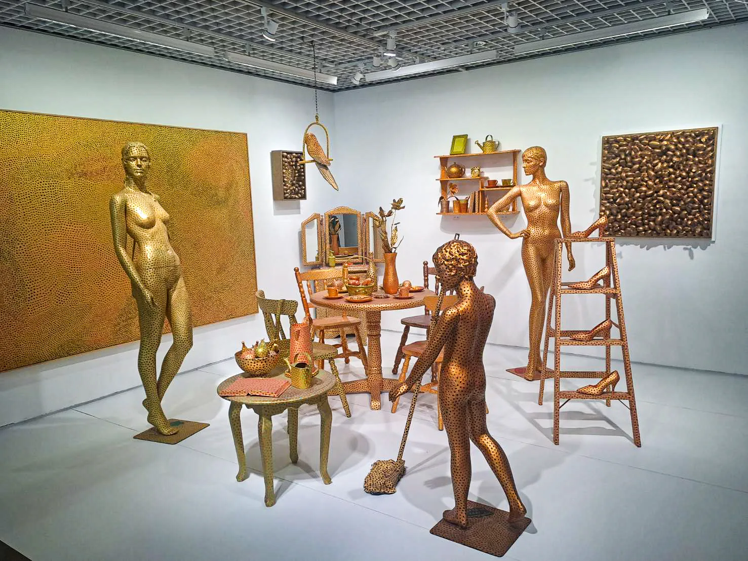 這擺展覽乜用特別重新做个《圓點个強迫妄想》點著大家个想像。行入北師美術館該時,就像行入草間彌生个世界、入到無邊無際个圓點裡肚。另外,該片還有非常多餳人个作品,值得大家去觀賞摎思考。