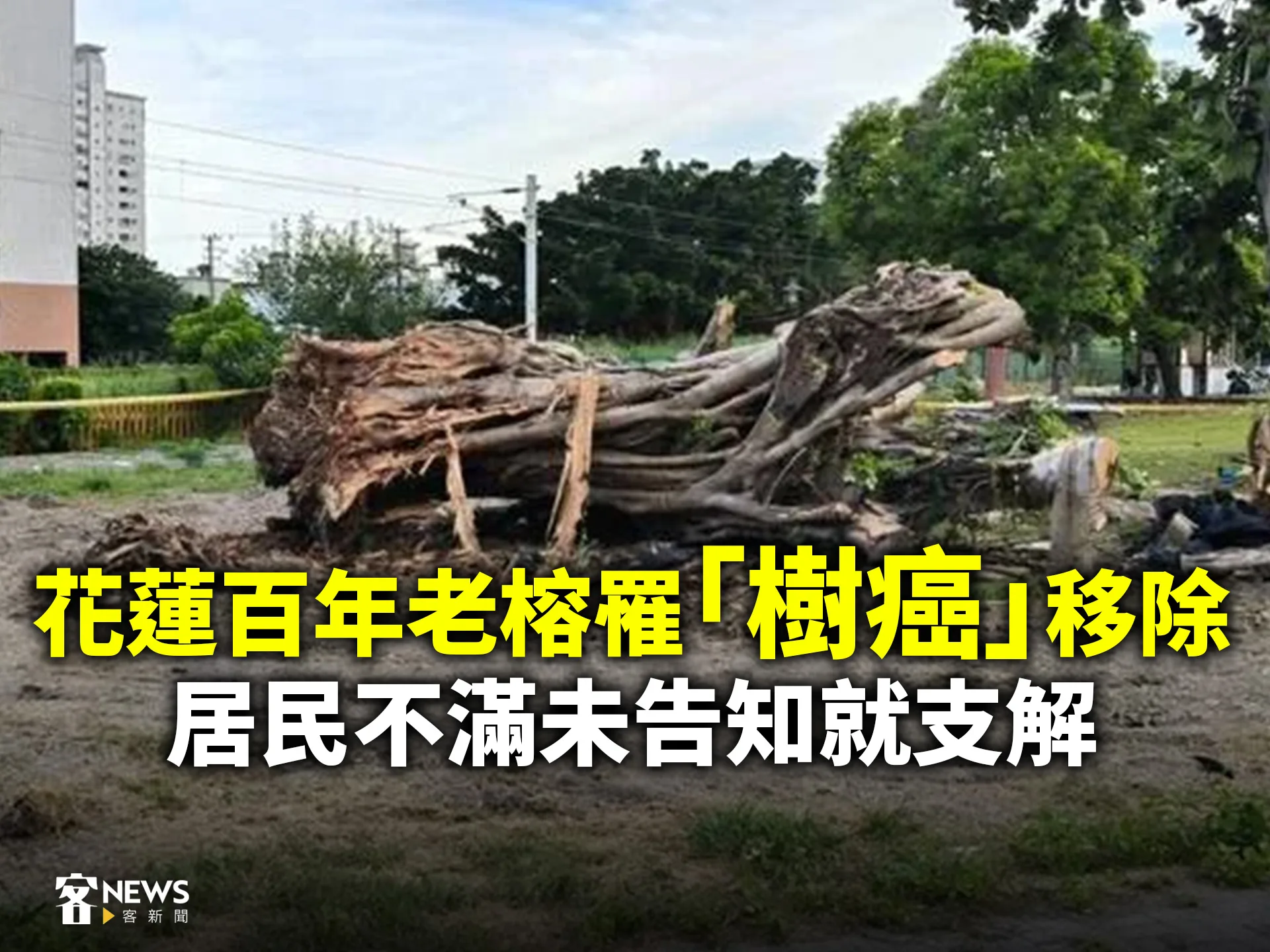 花蓮市舊田浦車站文化園區1棵百年老榕樹,被颱風吹倒後發現感染褐根病移除;在地居民反映,未事先預告就移除、支解老樹。中央社
