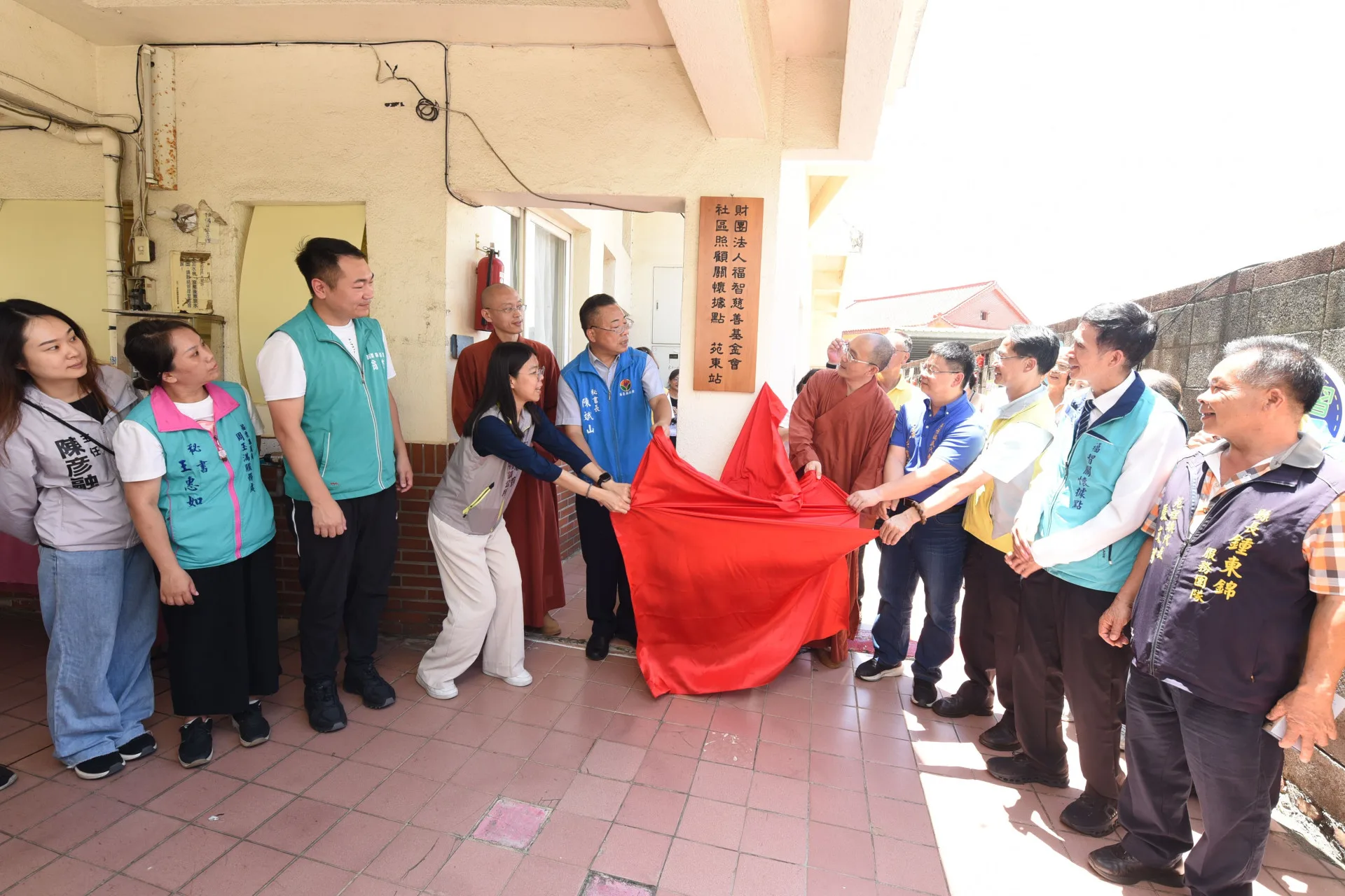 揭牌儀式昨天在苑裡鎮苑東里天下一家社區活動中心舉行。苗縣府社會處指出,普設社區照顧關懷據點是縣長鍾東錦致力推動的重要政策之一,委由福智慈善基金會開辦的苑東站社區照顧關懷據點,是苑裡第15處、全縣第226處據點,布建率推進到82.18%;此處據點設在有200多住戶的天下一家社區活動中心,長輩可以就近共餐或參加課程和活動。