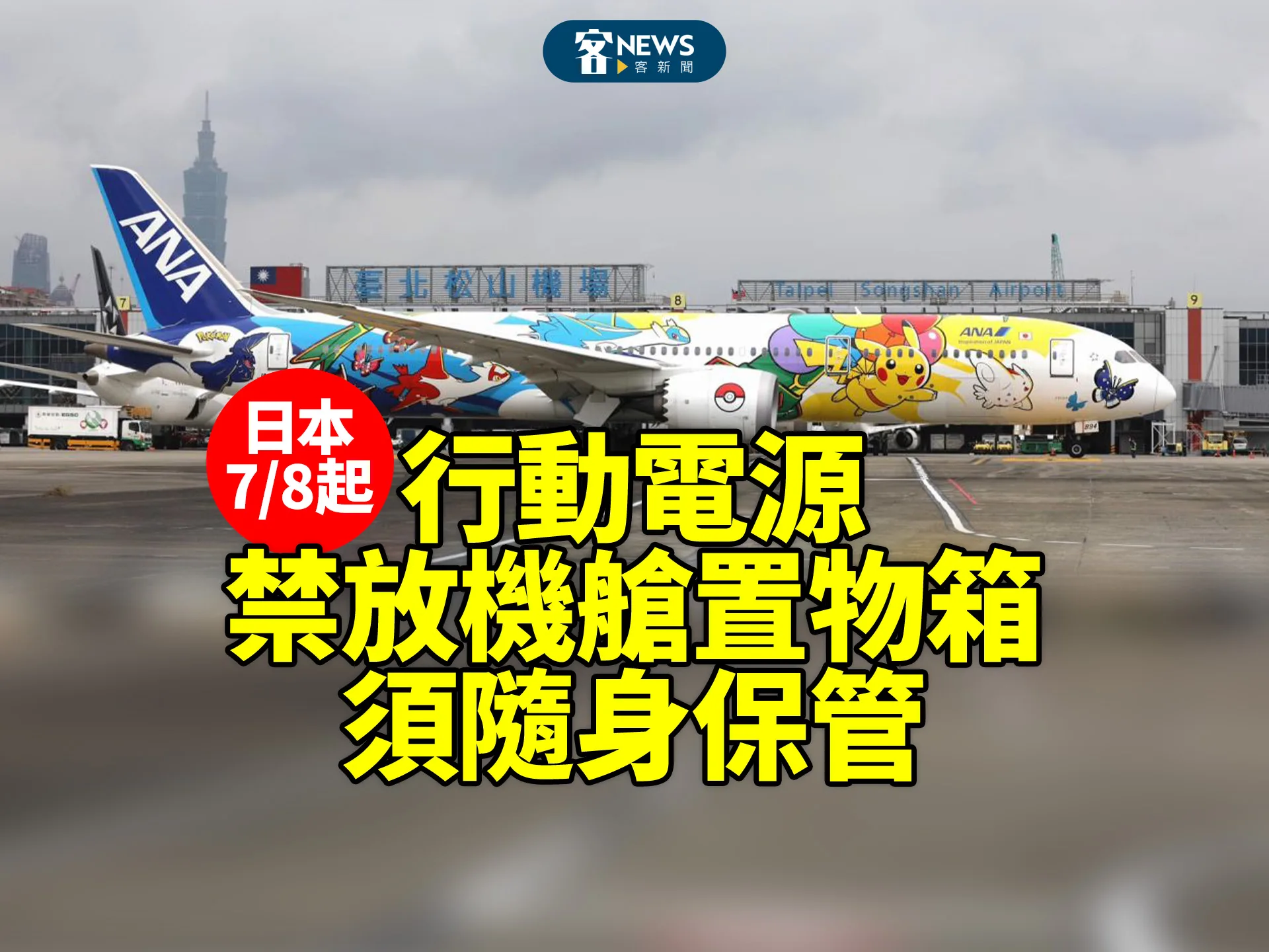 【生活中心 /綜合報導】日本國土交通省航空局(JCAB)昨天(1日)宣布,從本月8日起,搭乘全日空(ANA)、日本航空(JAL)等日本國籍航空公司班機時,不可將行動電源收納在機艙內頭頂的行李置物箱,必須隨身保管,以加強監控。