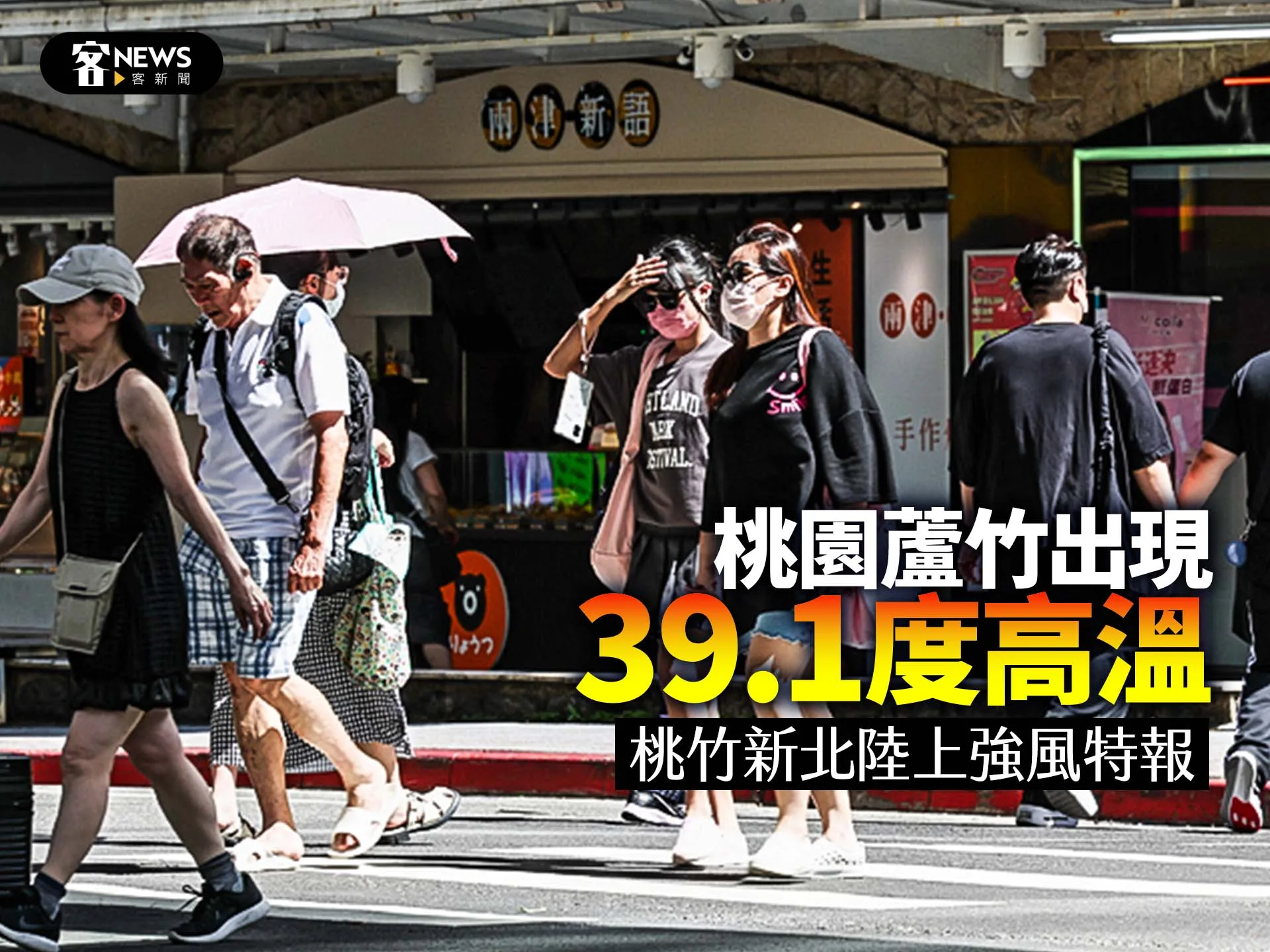 【生活中心/綜合報導】今天台灣各地天氣晴朗炎熱,根據中央氣象署監測數據,今天(2日)截至目前,最高溫出現在桃園市蘆竹區、中午1點最高溫達攝氏39.1度,其次為新北市三峽區的38.9度、今天中午12時30分。