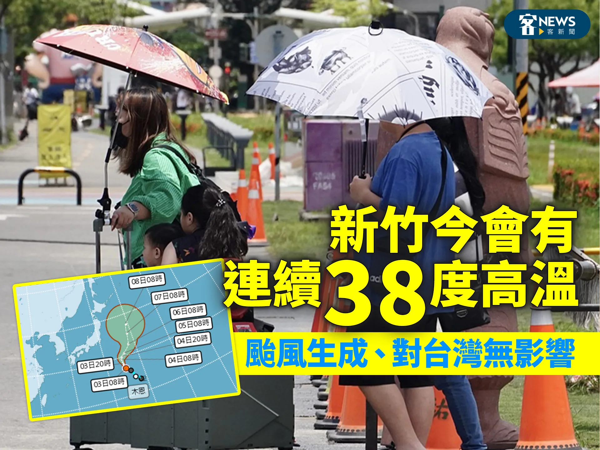 氣象署持續發布高溫資訊,今(3)日白天新竹縣為橙色燈號,有38度極端高溫出現的機率;臺北市、新北市、桃園市、苗栗縣、彰化縣、雲林縣、臺南市、金門縣為橙色燈號,有連續出現36度高溫的機率,請加強注意。新竹市、嘉義縣、宜蘭縣為黃色燈號,請注意。