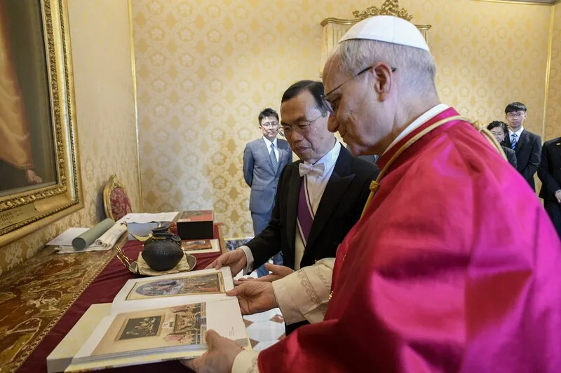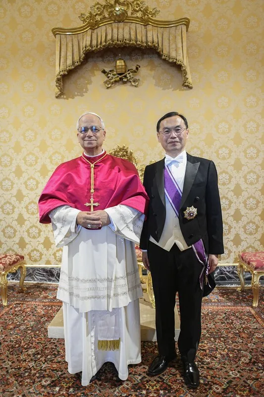 【要聞中心/綜合報導】台灣駐教廷大使賀忠義今天向教宗良十四世呈遞到任國書,轉達總統賴清德誠摯問候。教宗表示,他會為台灣和平祈禱,也對台灣在疫情時援贈其所在的祕魯教區印象深刻。梵蒂岡官方社群IG隨後貼出兩人會晤合照。