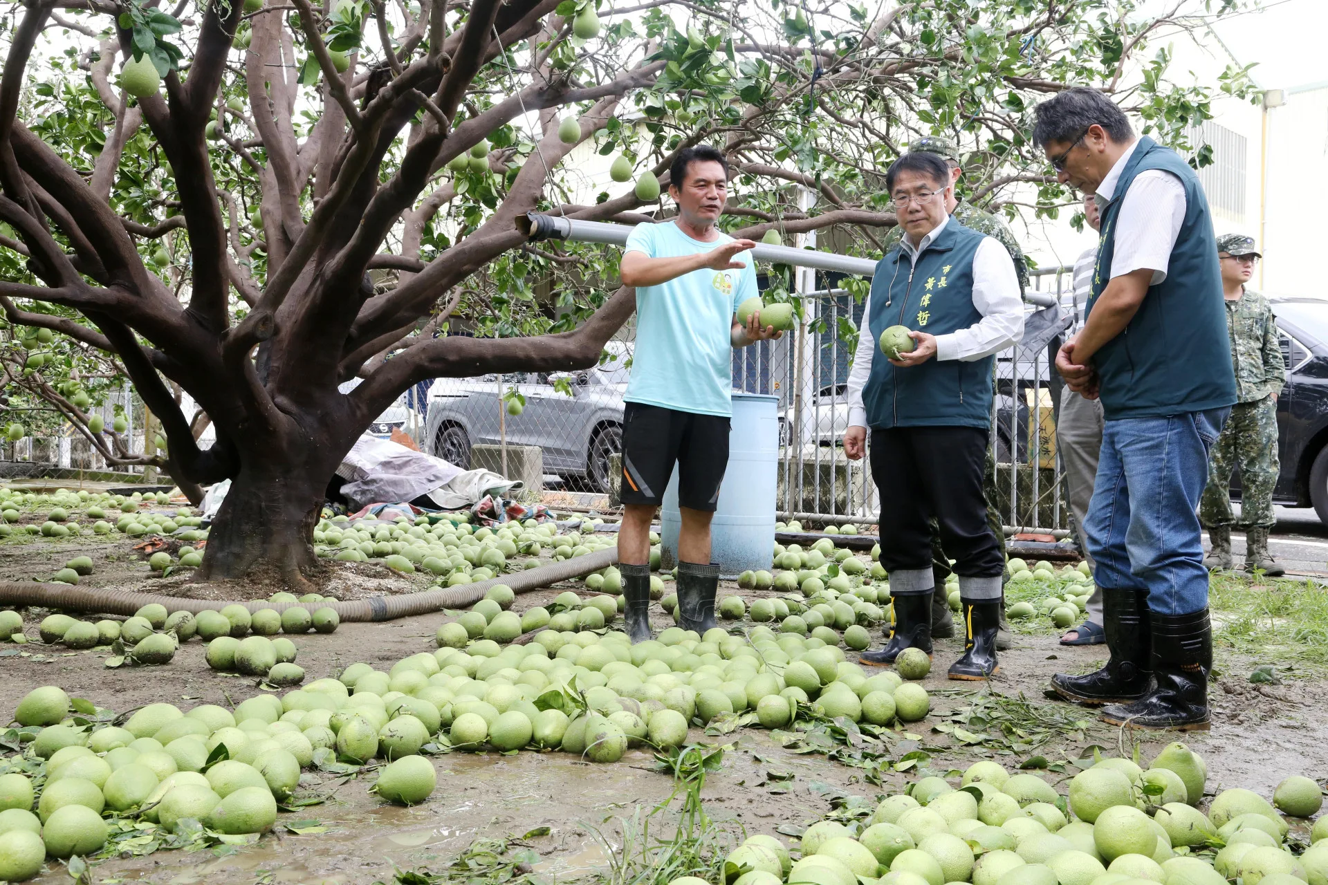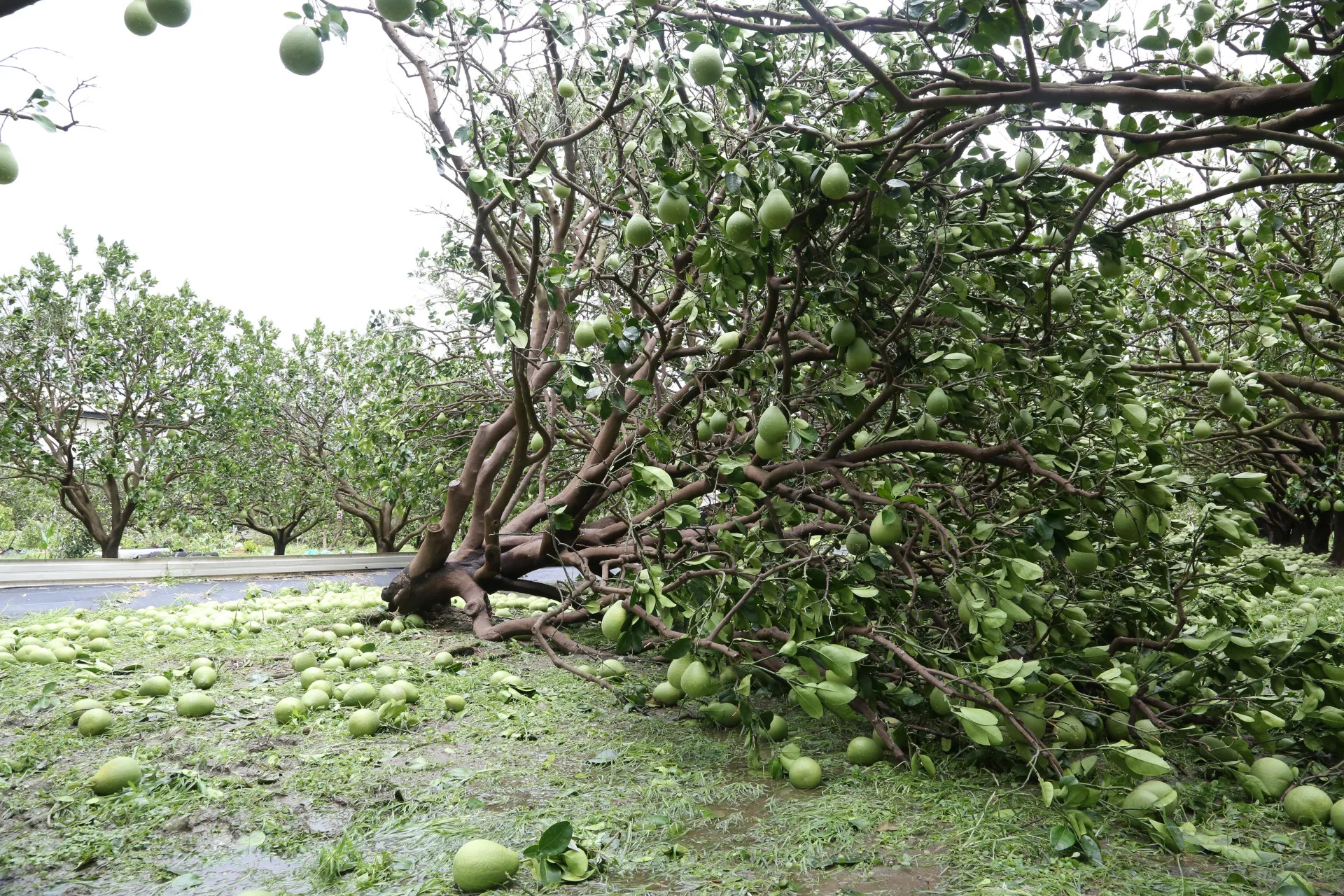 根據農業部統計,此次颱風受損金額最大的作物是文旦柚,確認無收穫面積已達400公頃,估計損失1億1840萬。台南市長黃偉哲今天也趕往文旦主產區勘災,瞭解果園受災情形。
