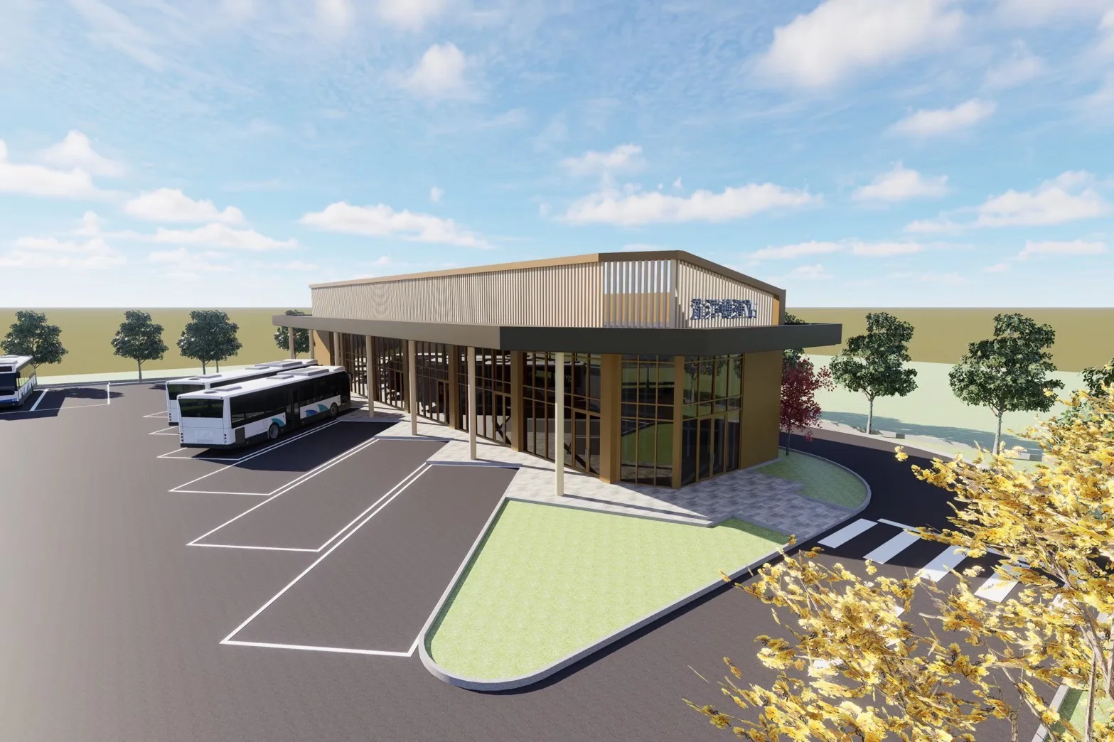 轉運站先導站基地面積約1250坪,規劃興建地上1層建築,設置6席大客車月台及123席機車停車位,提供乘客更便捷的搭乘服務。