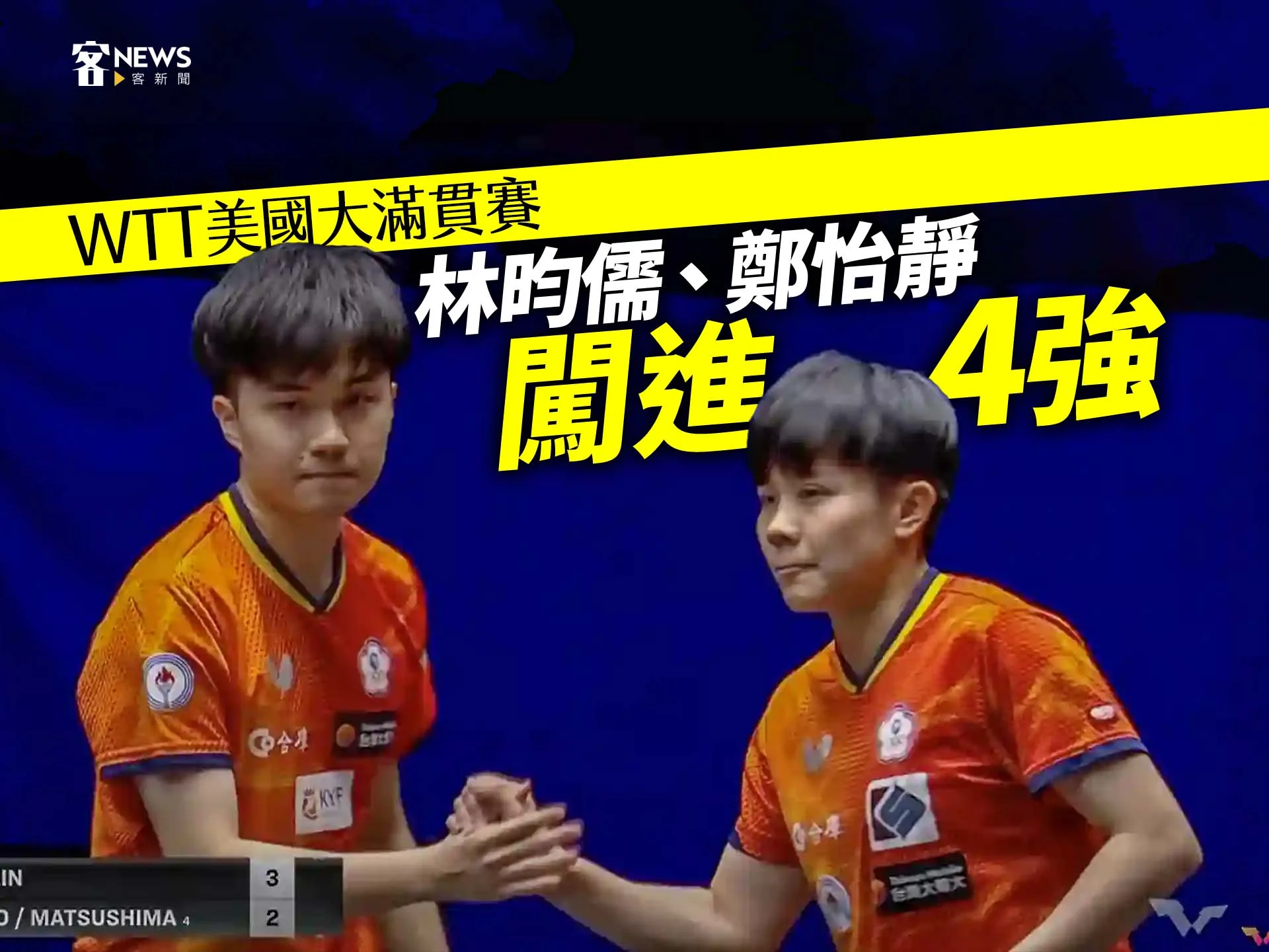 【生活中心/綜合報導】世界桌球職業大聯盟(World Table Tennis, WTT)美國大滿貫賽今(10)天進行混雙8強,台灣「黃金組合」林昀儒、鄭怡靜,面對大會第4種子、日本組合松島輝空與張本美和,耗時47分鐘,以11比5、12比10、8比11、9比11、11比7,驚險拿下勝利,挺進4強。