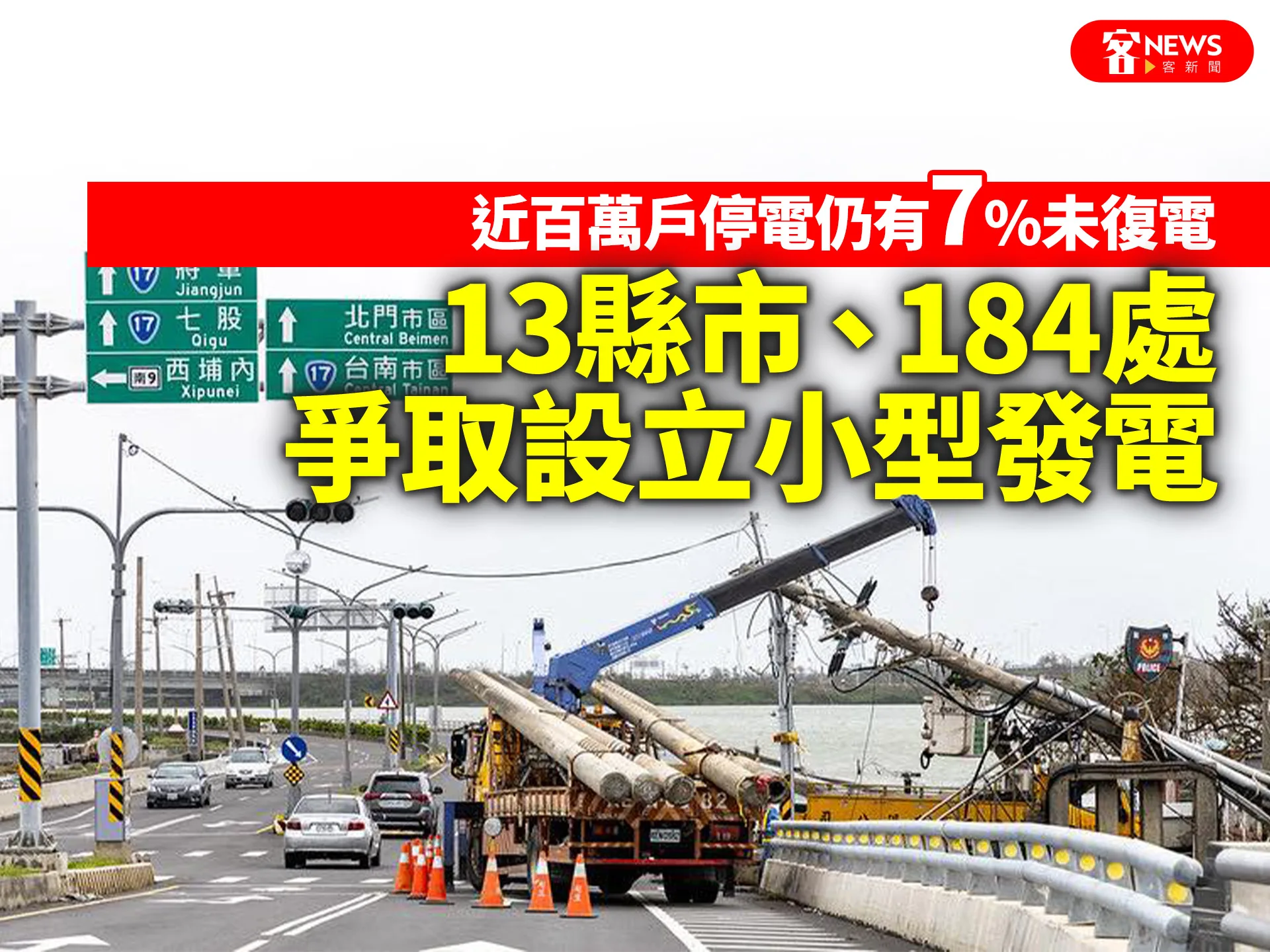 【要聞中心/綜合報導】這次丹娜絲颱風登陸及後續的低壓帶、西南風豪雨,導致全台多處近百萬戶大停電,迄今仍有7%左右尚未復電;內政部昨天(10日)表示,有13縣市、共184處易成孤島地區,為提升整體防救災能量,已盤點這些地區有設置太陽光電與小水力發電需求,將提請行政院災害防救辦公室協調爭取建置經費。