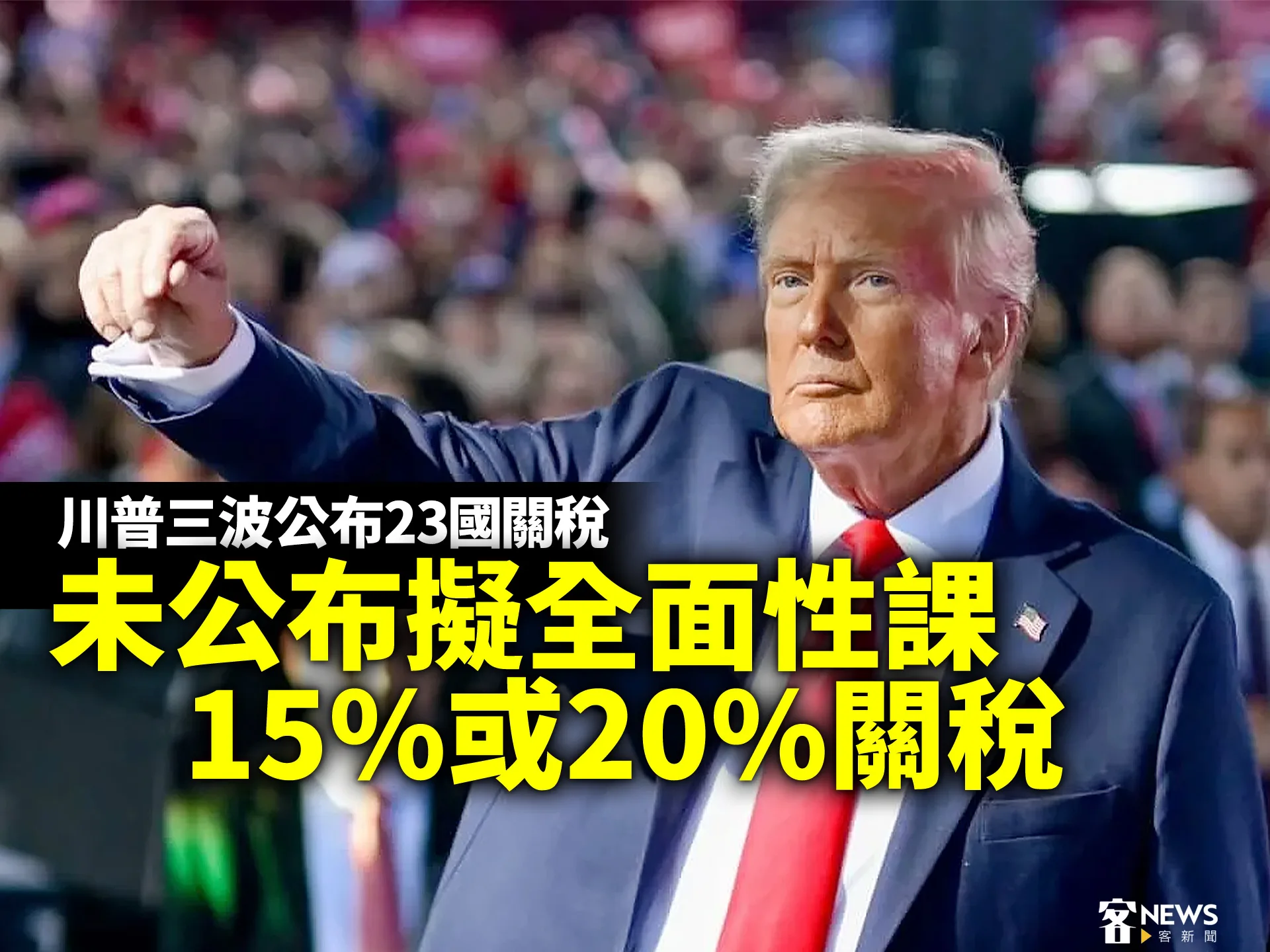 《美國國家廣播公司新聞網(NBC News)》報導指出,美國總統川普10日表示,他預計對剩餘大多數的貿易夥伴,實施15%或20%的全面性關稅。川普於日前公布兩波關稅稅率,不少國家的關稅稅率高於川普與今年4月3日公布的對等關稅稅率。