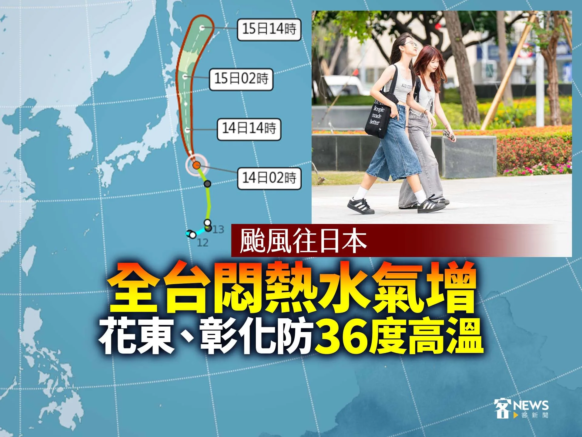 【生活中心/綜合報導】氣象署表示,今天(14日)各地高溫約在32至34度,彰化縣有連續出現36度高溫的機率;花蓮縣、臺東縣氣溫可達36°C以上。各地水氣比前兩天增多,今上半天天,中部以北,會有局部短暫陣雨或雷雨,並有局部較大雨勢發生機率,南部也有零星短暫陣雨,其他地區為多雲到晴;下半天全台各地,都會有午後局部短暫雷陣雨。