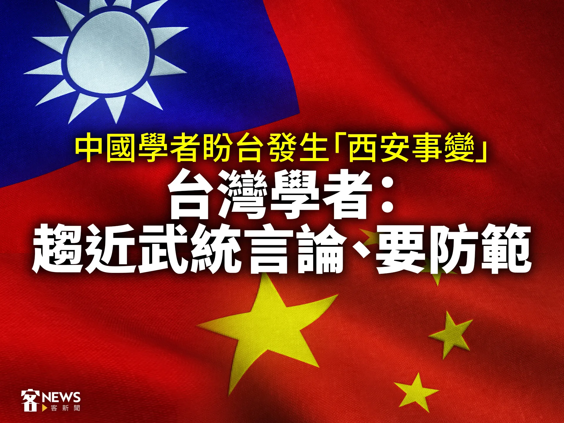 【生活中心/綜合報導】中國全球化智庫副主任高志凱近日表示,希望台灣發生「第二次西安事變」,實現「統一」。有台灣學者提醒,這已經是「趨近於攻打的武統手段,」台灣要有所防範。