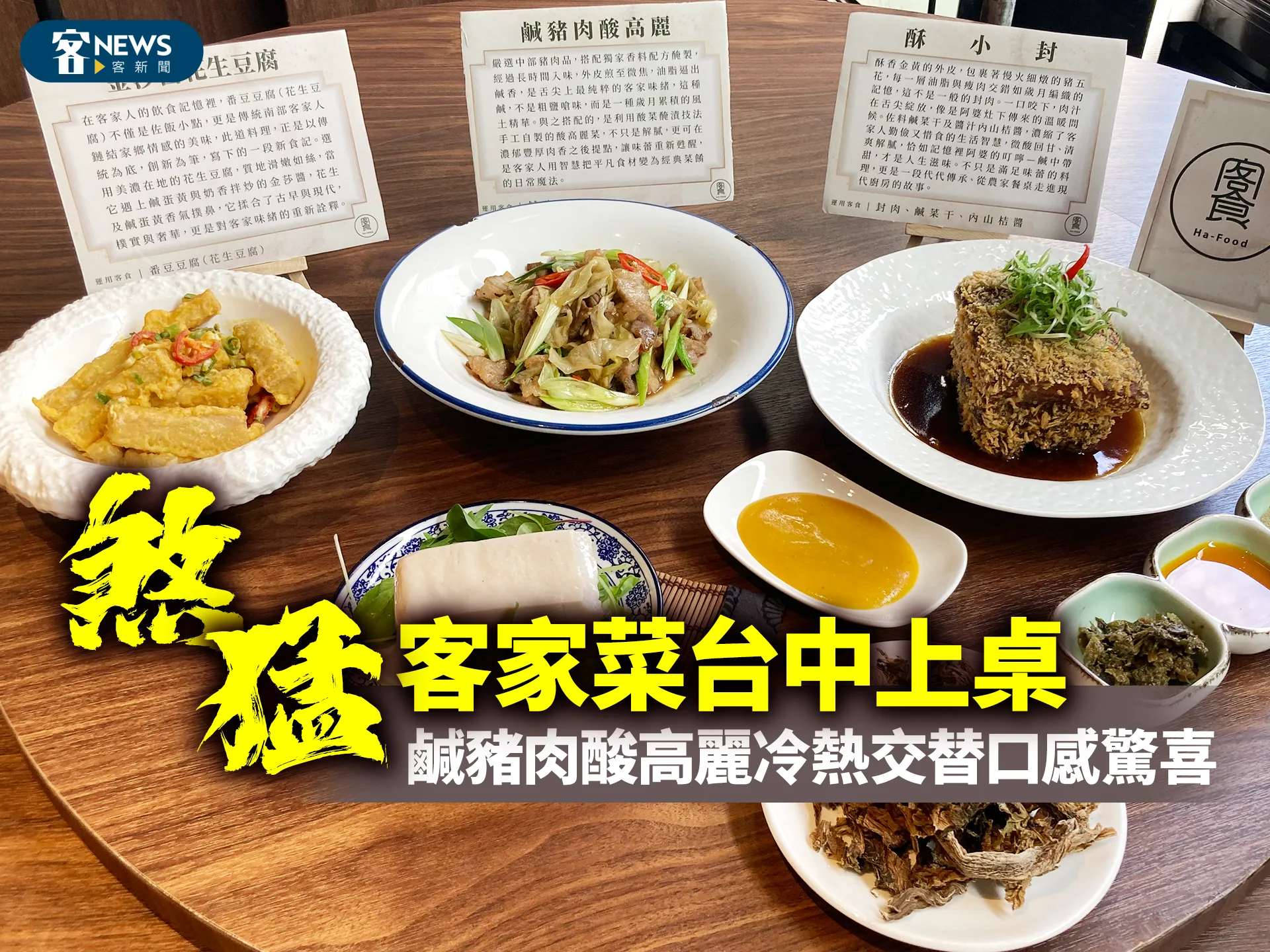 【客庄中心/綜合報導】客家委員會為落實賴清德總統「客家六箭」,持續推動「客食(Ha-Food)」品牌,客委會副主任委員邱星崴昨天(16)赴台中市膳馨民間創作料理創始店,品嘗主廚王韋荃精心研發的3道創意客家料理:「金莎醬花生豆腐」、「鹹豬肉酸高麗」、「酥小封」,期待透過跨界合作與創新詮釋,讓傳統客家食材以全新樣貌,進入現代飲食生活,展現「客食文化」獨特的多元性。