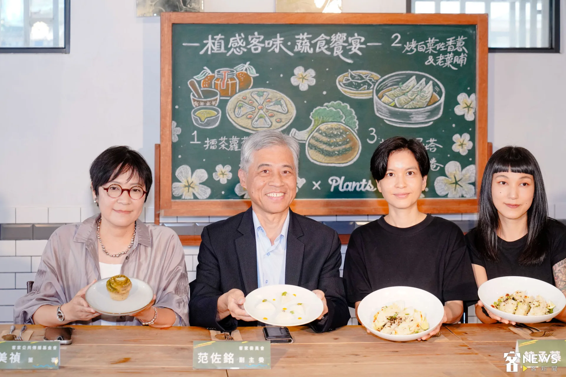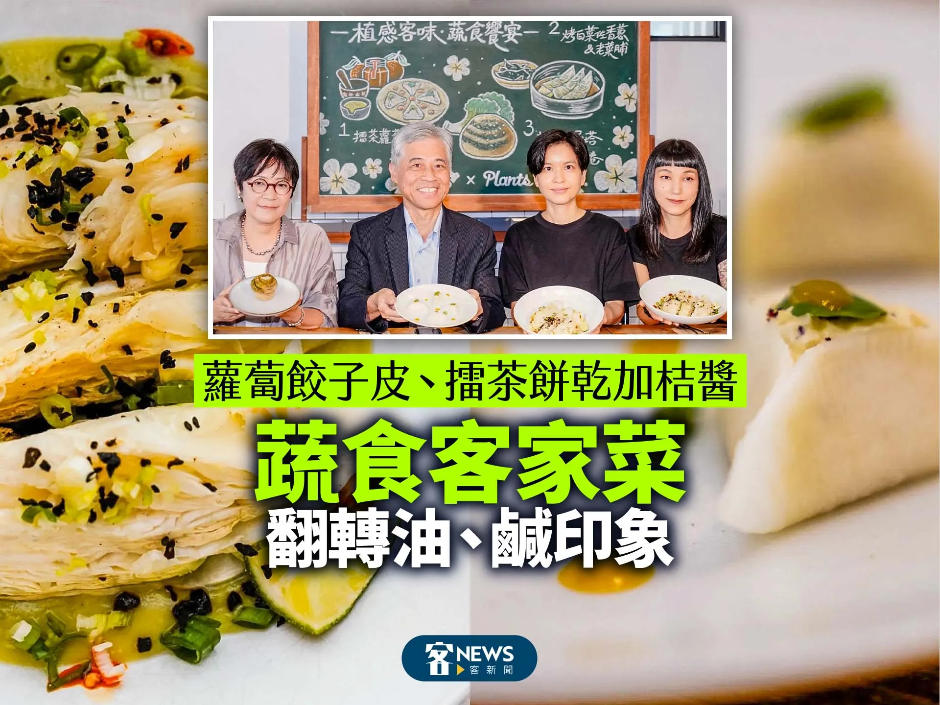 客家委員會為推動「客食(Ha-Food)」品牌,今年特別選出52種客家食材,開放全台各地餐廳參與評選,一共評選出7家餐廳、創作出25道創新客家料理。今天(18日)在Plants植宿餐飲,公開該餐廳研發的「植感客味・蔬食饗宴」 3道創新客家料理。范佐銘、Plants創辦人饒孟蓁及共同創辦人林莉、長期關注台灣農村與客家文化的作家兼客家公共傳播基金會董事陳美禎一起品嚐。