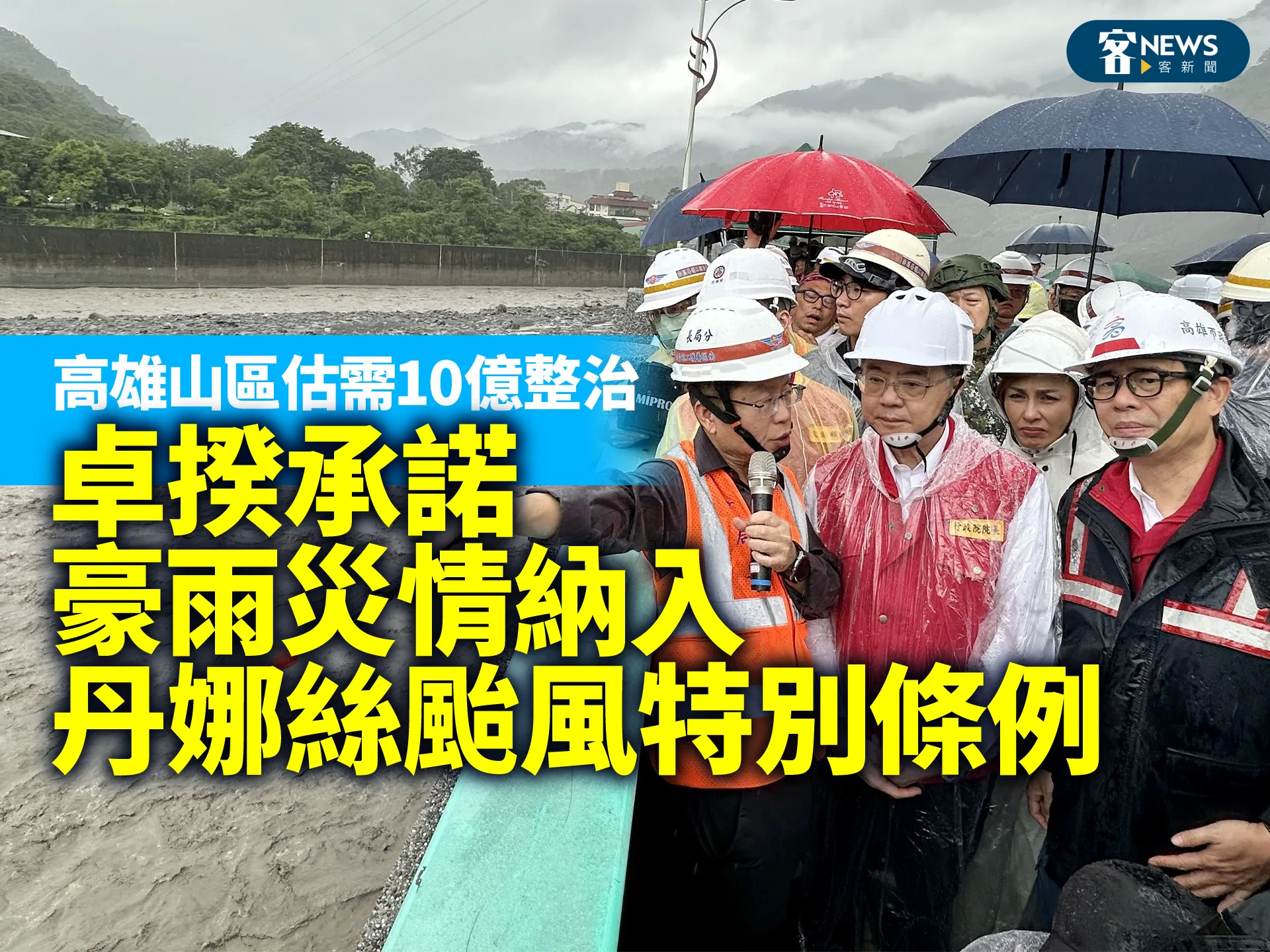 【客庄中心/綜合報導】高雄山區連日下超大豪雨,山區多處聯外道路坍塌、路基流失,高雄市長陳其邁昨天(4日)陪同行政院長卓榮泰前往六龜山區視察表示,台20線寶來至桃源市區約有10處坍方,地基裸露嚴重,塔拉拉魯芙橋橋梁變形,將先進行安全評估,道路交通、橋梁等重建工程,總經費約10億元,盼中央專案補助;卓榮泰承諾將0728豪雨納入丹娜絲颱風特別條例,加速重建。