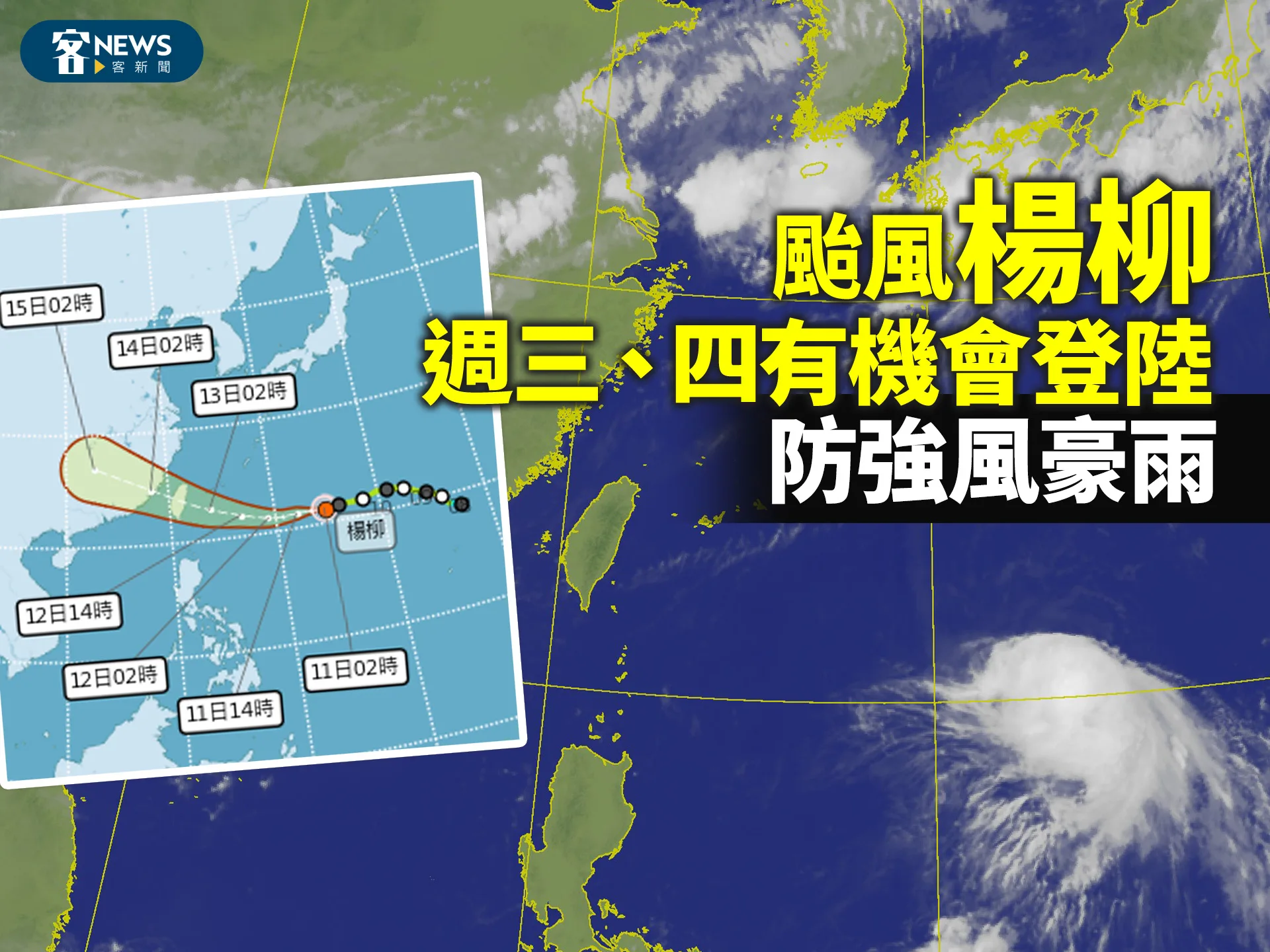 颱風「楊柳」週三、四有機會登陸 防強風豪雨