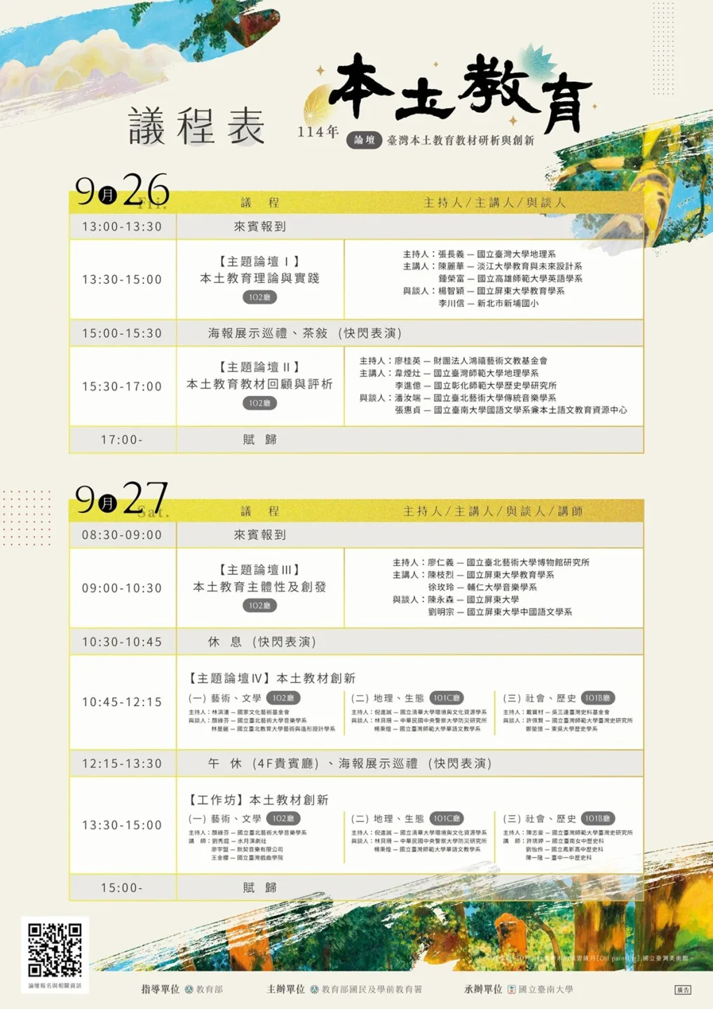 由教育部主辦个本土教育論壇,這隻月26號、27號在台北登場,除了邀請資深教師、作家、藝師分享,現場還有攤位提供桌遊、繪本、手工藝體驗,分親子共同體驗本土文化魅力。