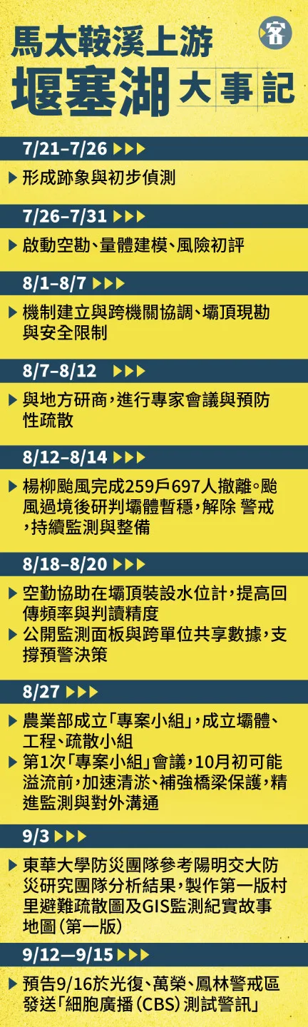 李鴻源證實,他曾在約兩週前,接受內政部長劉世芳邀請,協助專家團隊監控馬太鞍溪上游這個堰塞湖。經團隊重新模擬,確認受影響區域超過原先估計,提供新的數據給內政部,才有了強制疏散約8000人的決定。