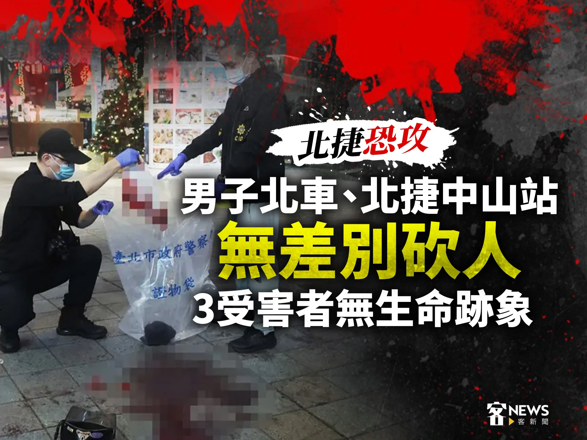 【要聞中心/台北報導】北捷台北車站M7、M8出口及捷運中山站商圈,今天傍晚接連遭無差別攻擊!一名27歲通緝犯傍晚投擲煙霧彈並持刀隨機行刺,警方在中山站商圈圍捕時,男嫌從百貨墜樓,送醫前無呼吸心跳,警消統計共9人受傷、4人命危。