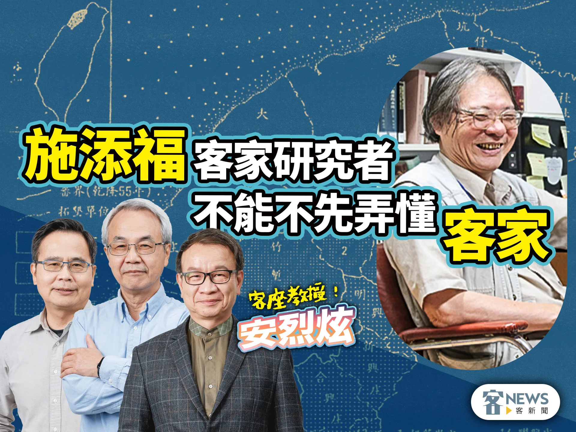 「講客廣播電臺」邀請國內3位重量級客家學者張維安、羅烈師與林本炫,共同主持客家知識含金量超高的廣播節目《客座教授!安烈炫》,將嚴肅的族群文化與客家議題,透過輕鬆對談的方式,傳遞給大家,把學術研究和民眾的距離,拉得更近一點。