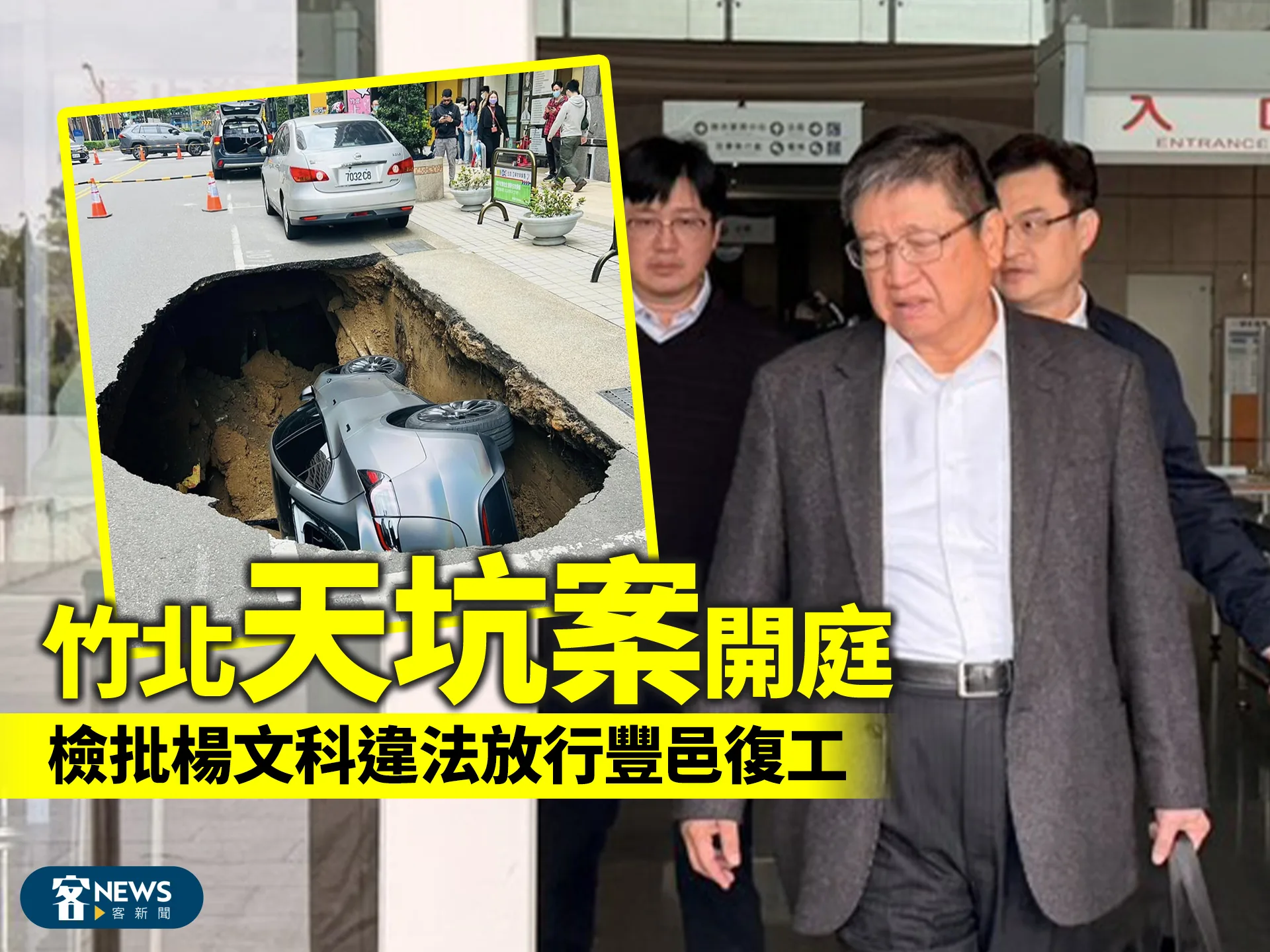 【客庄中心/綜合報導】竹北「天坑案」歷經一年多審理,新竹地方法院昨天開庭言詞辯論,檢察官指出,面對「豐采520」案道路坍塌,新竹縣長楊文科與竹縣府工務處「官商勾結」,在未排除危險因素下即准予復工;楊文科律師團表示,復工審查本就屬行政裁量,只要安全可復工。