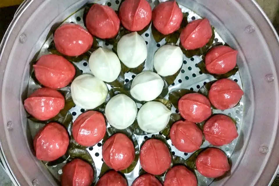 新埔鳳嬌米食的王保璋師傅分享,「客家人在尾牙和過年會吃菜包過節,因為這時候剛蘿蔔盛產,除了白色的菜包,很多客人還會指定要紅色的菜包,因為看起來比較喜氣,用紅色的菜包拜拜神明也歡喜。」