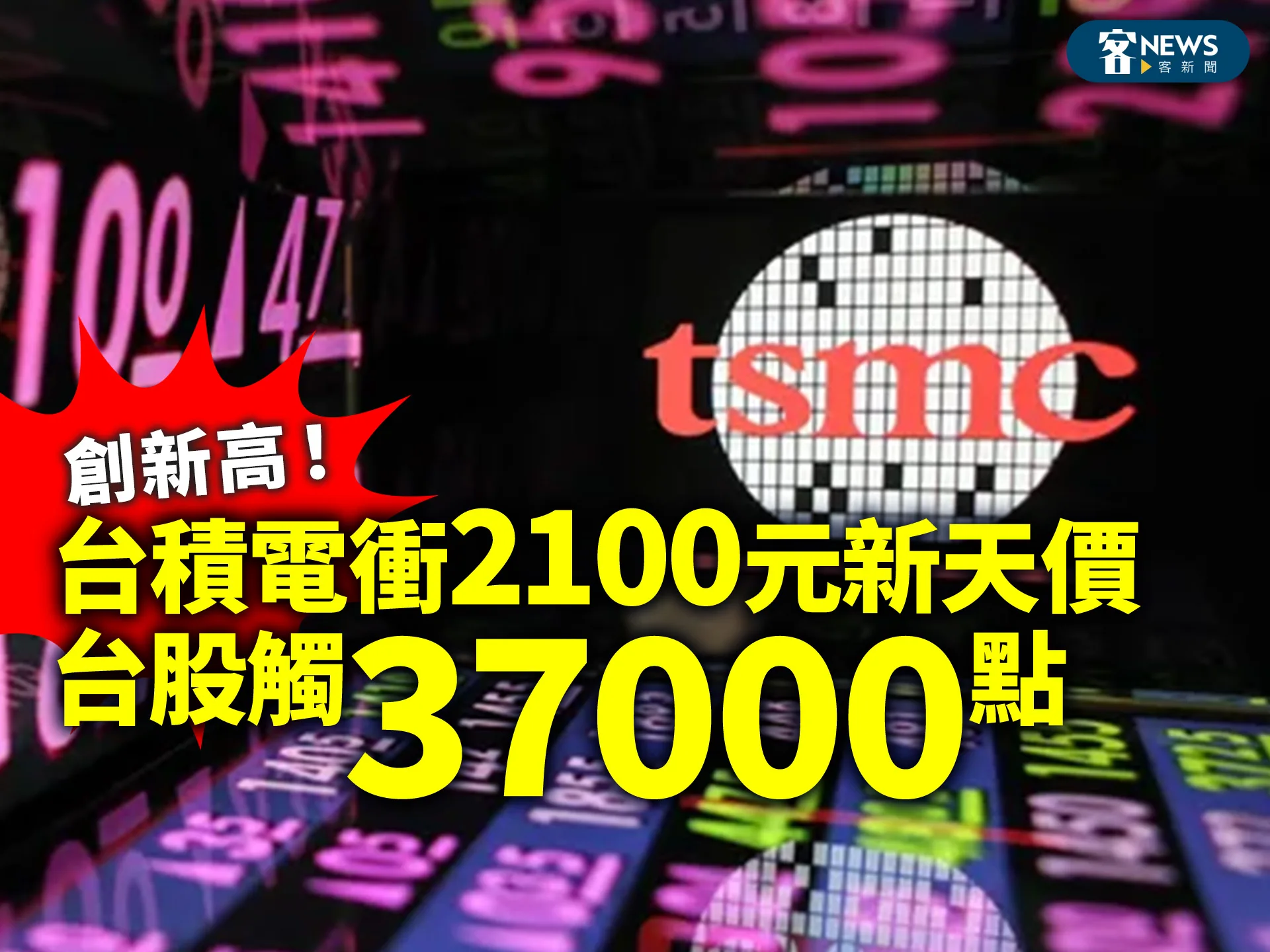 台股盤中突破37000點,台積電也一度來到2100元。中央社