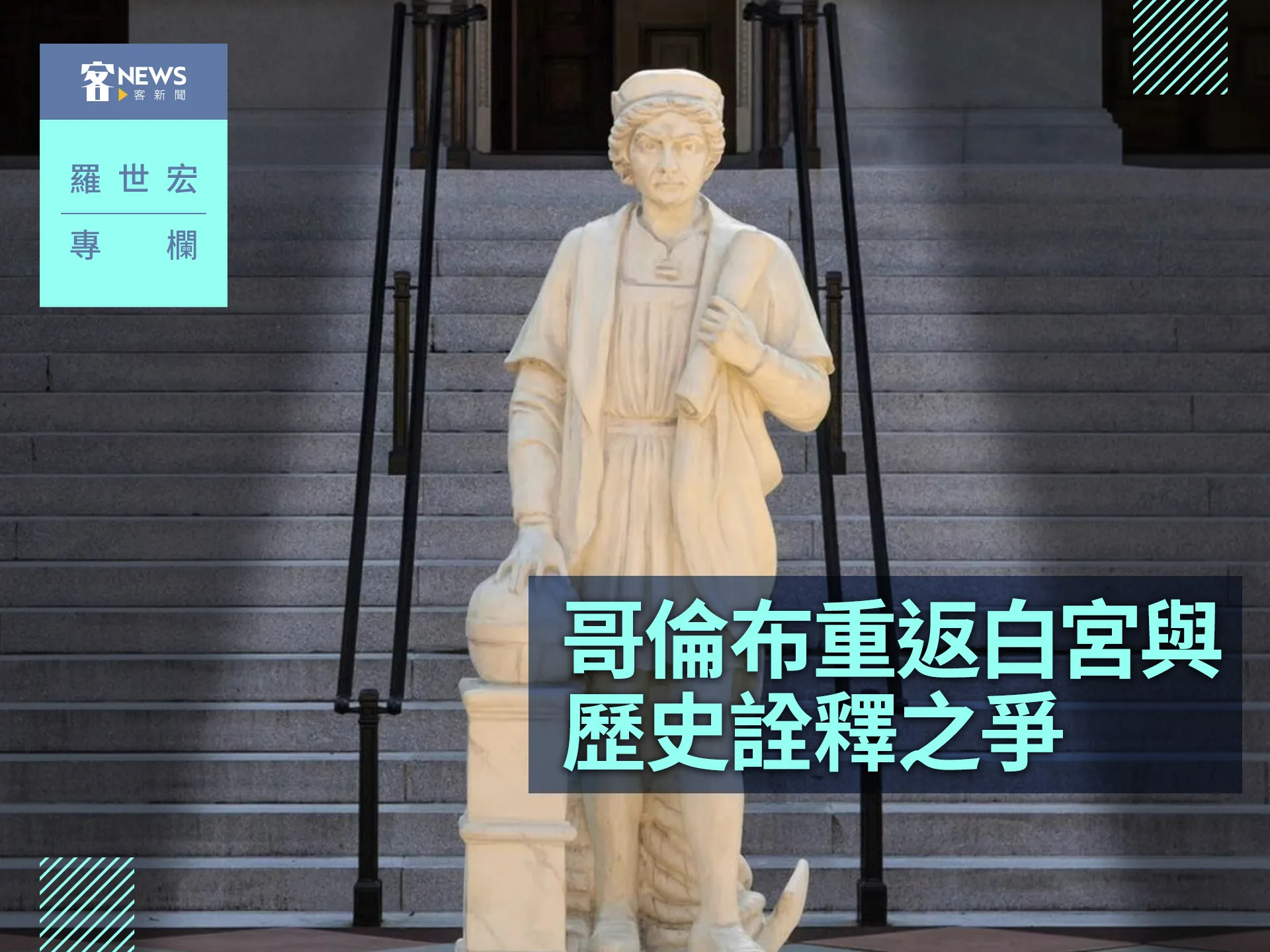 一座曾經被人們破壞並棄置於港灣的雕像,如今以複製品的身分重登白宮草坪此一行動本身,即深具「文化戰爭」的政治意涵。川普稱哥倫布為「美國最初的英雄、西方文明的巨人」,不容以另類史觀否定。