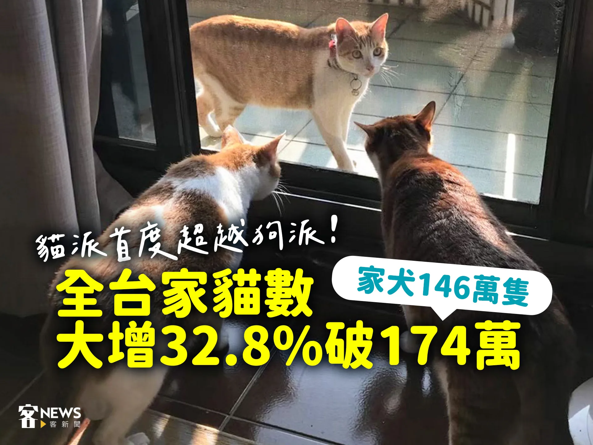 【李台源/綜合報導】家中養貓還是養狗?農業部今(20)天發布「114年全國家犬、家貓飼養數量電訪調查推估結果」,全國推估家犬數為146萬餘隻,家貓則約174萬餘隻,家貓首度超越家犬,不過有趣的是,全國飼養家犬的家庭數量仍略高於家貓,原因是國人飼養2隻以上的家貓的比例,較以往調查增加,因此使得家貓飼養總數勝過家犬。