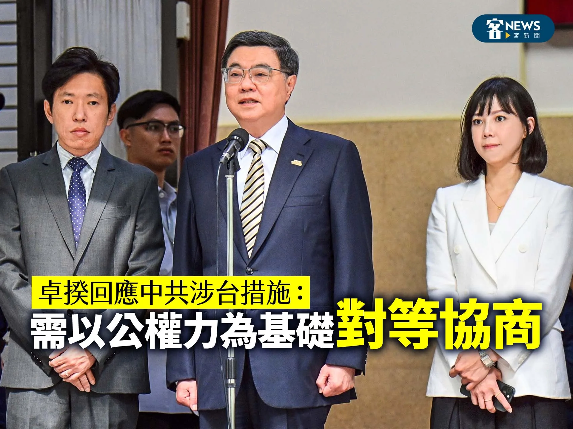 【李台源/綜合報導】中共日前對台發布「涉台10項措施」引起各界討論。行政院長卓榮泰今(21)天強調,各項涉台交涉措施,都要有公權力作協商基礎,「只要時機成熟,我們也可以主動向對方提出邀請」。他並補充,時機成熟前提是雙方要有對等、友善的交流態度,所談內容能夠公開且明確,雙方更要有長期穩定合作的誠意跟意願。